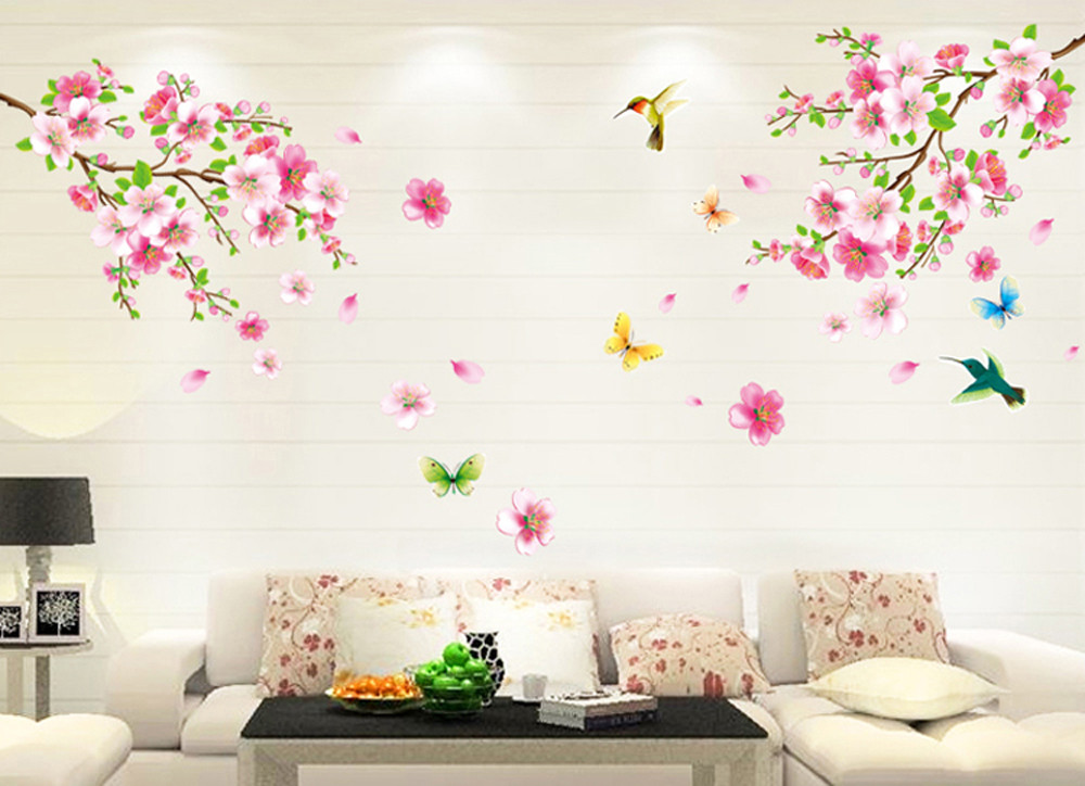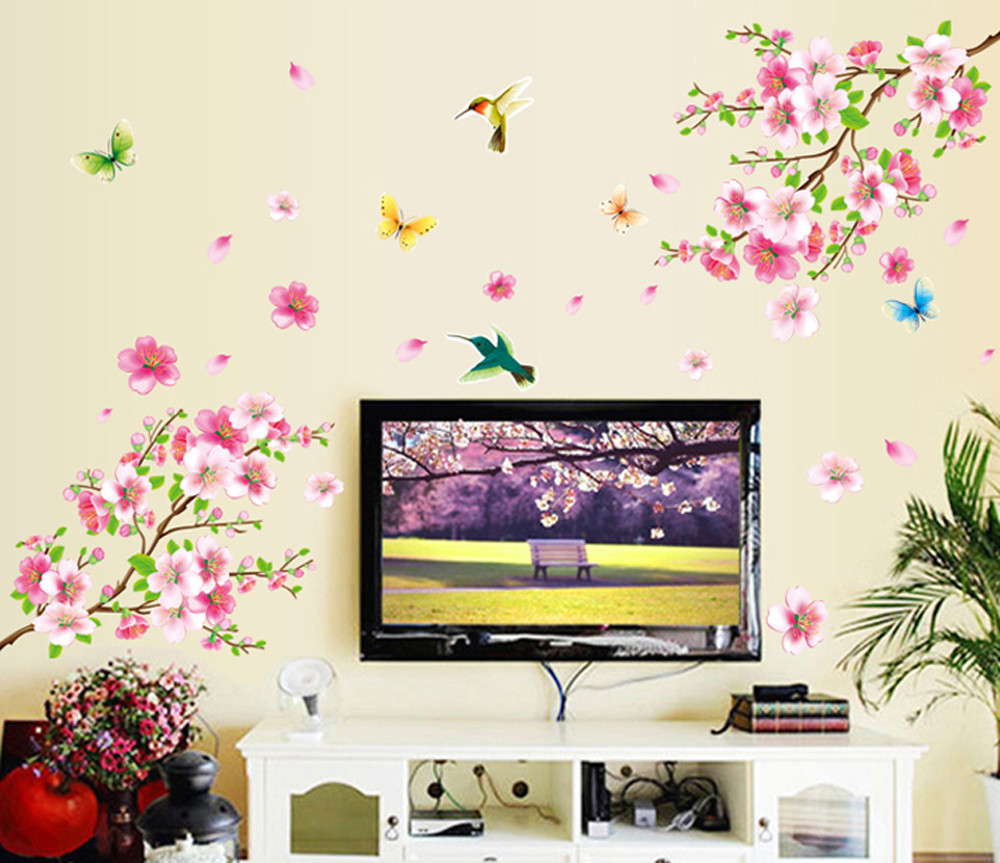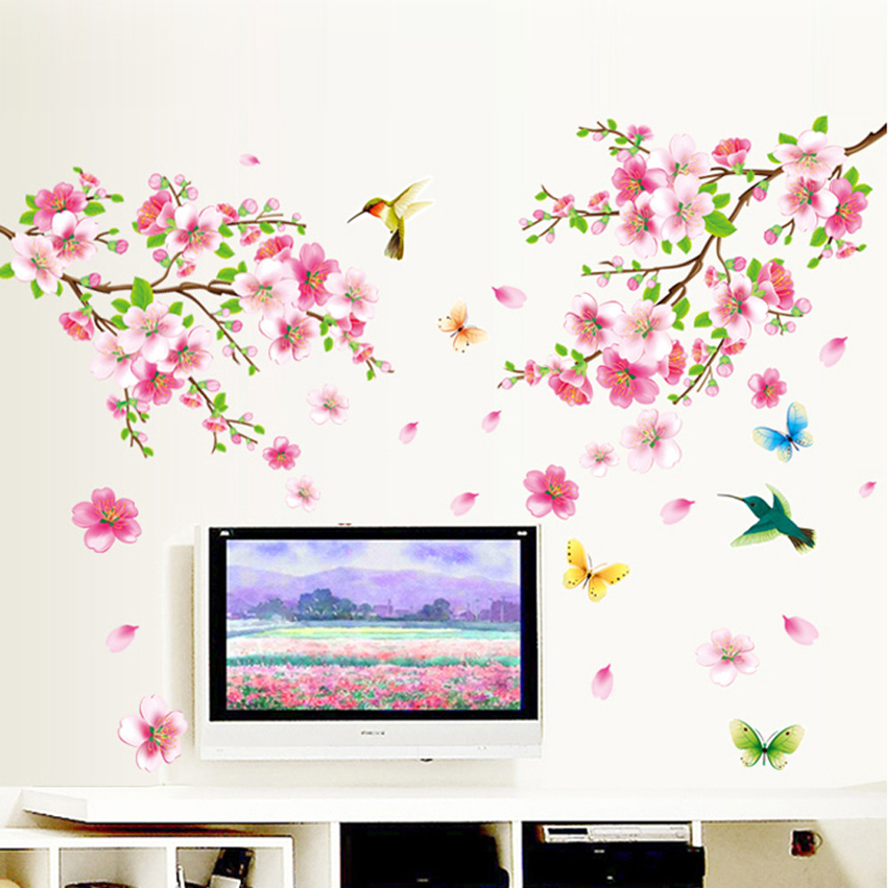 Large Cherry Blossom Flower Butterfly Tree Wall Stickers Art Decal Home Decor
