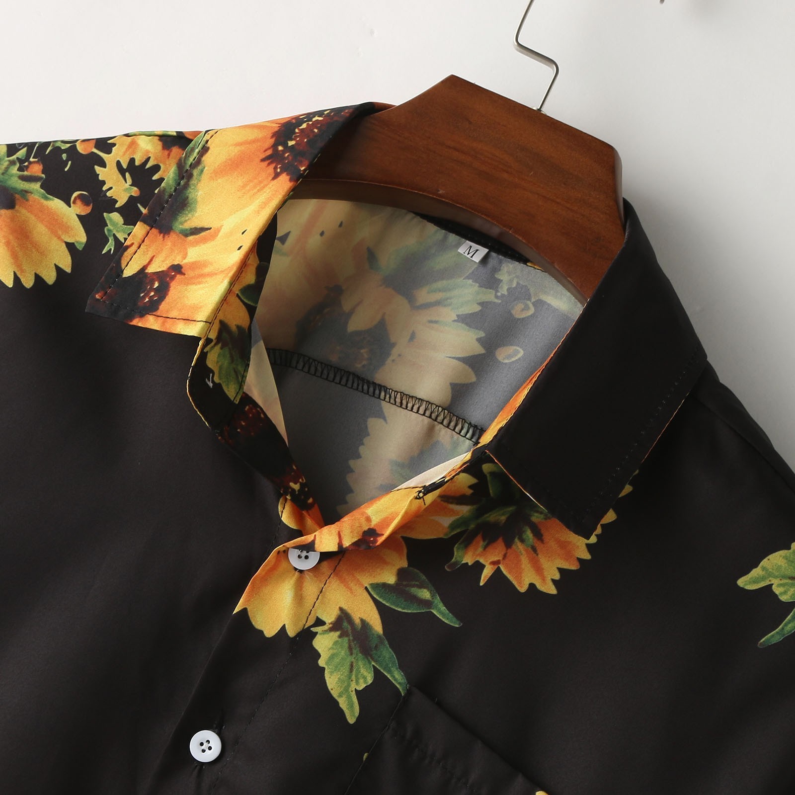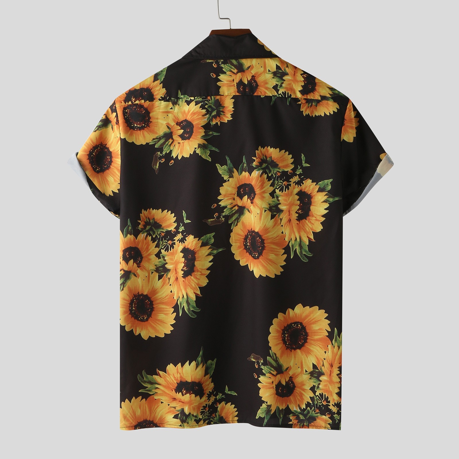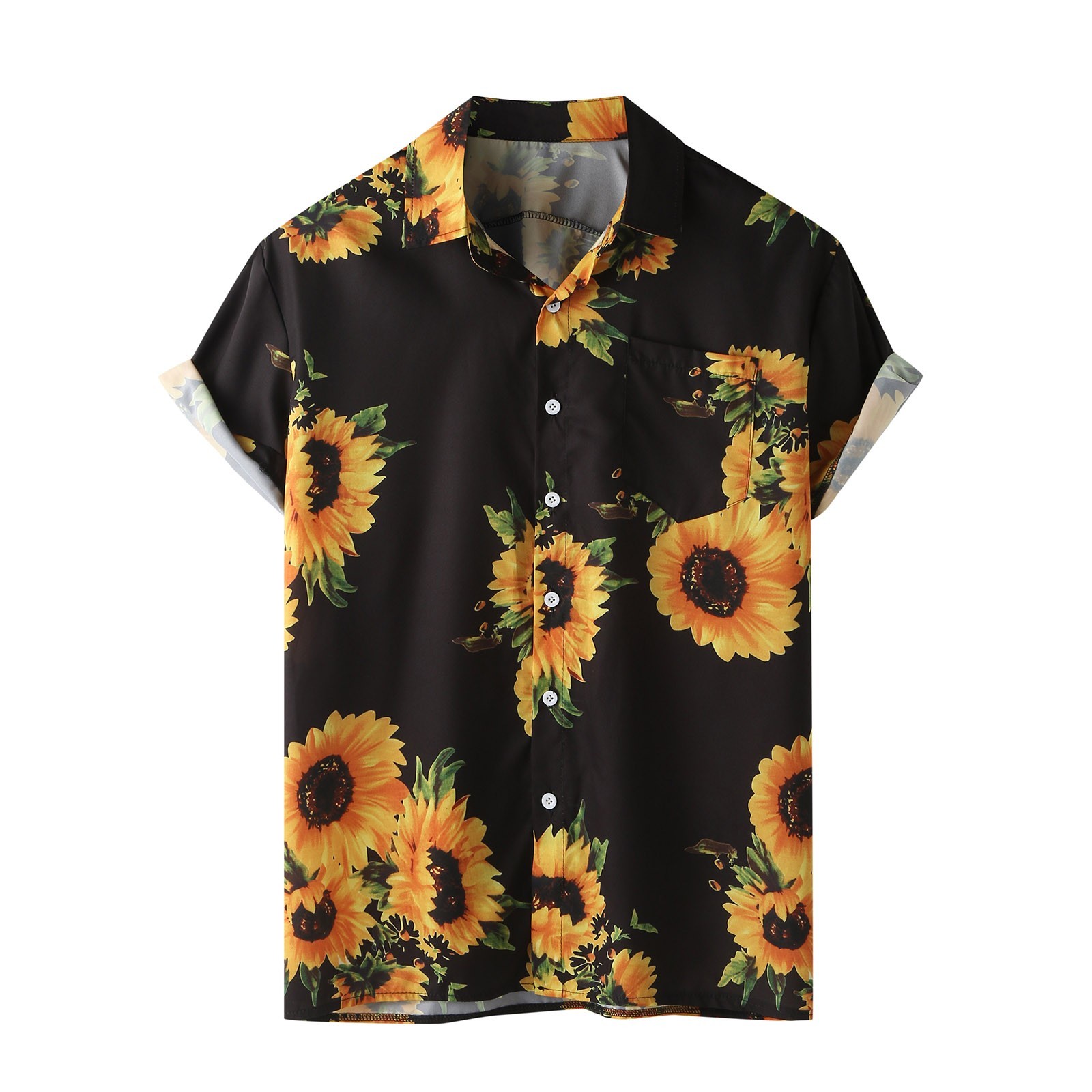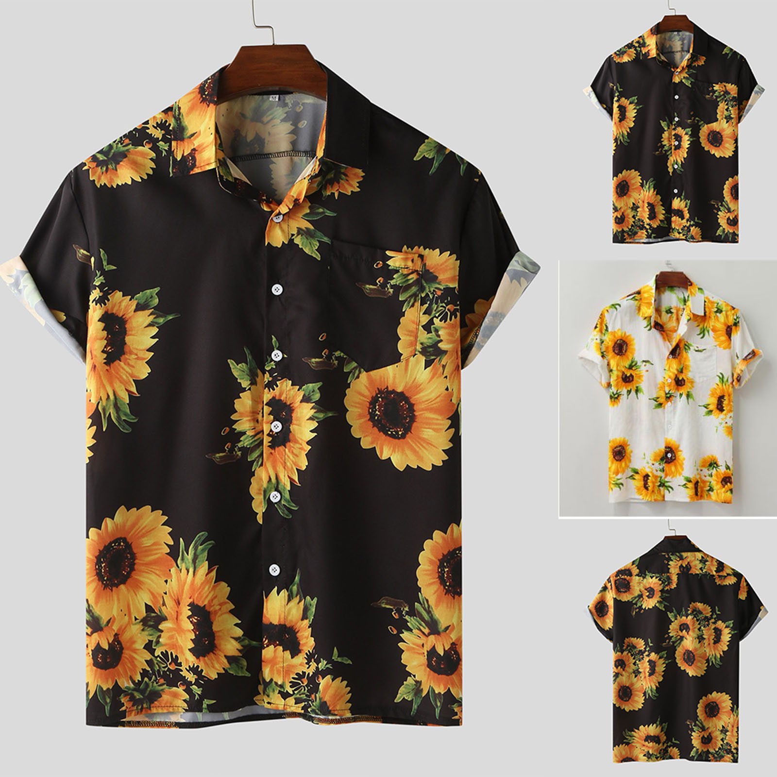 Мужская разноцветная летняя свободная Гавайская Повседневная рубашка с короткими рукавами и пуговицами