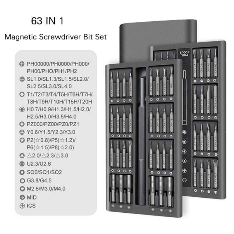 62 шт. винтовых бит и одна отвертка, в пластиковой коробке-посылка с магнетизмом. Легкий в эксплуатации, прочный и портативный.