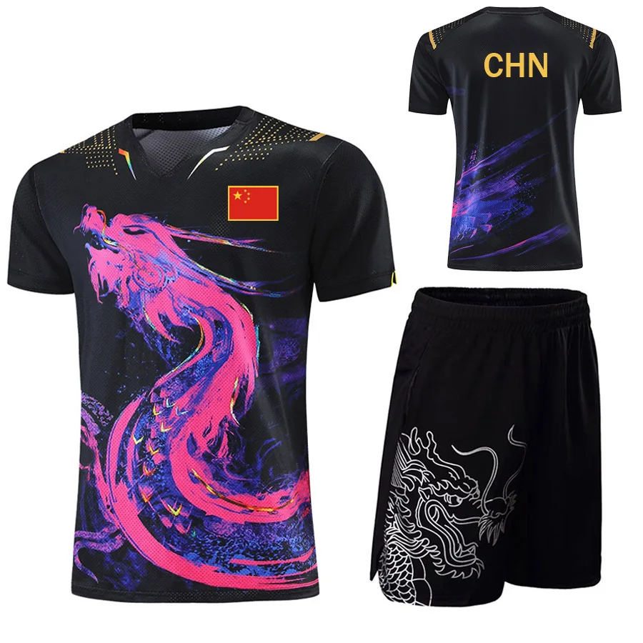 Китайский дракон Национальный Настольный теннис рубашка шорты для мужчин и женщин мальчиков пинг Трикотажные изделия для игры в теннис девушки Женский теннисные наборы Одежда для настольного тенниса