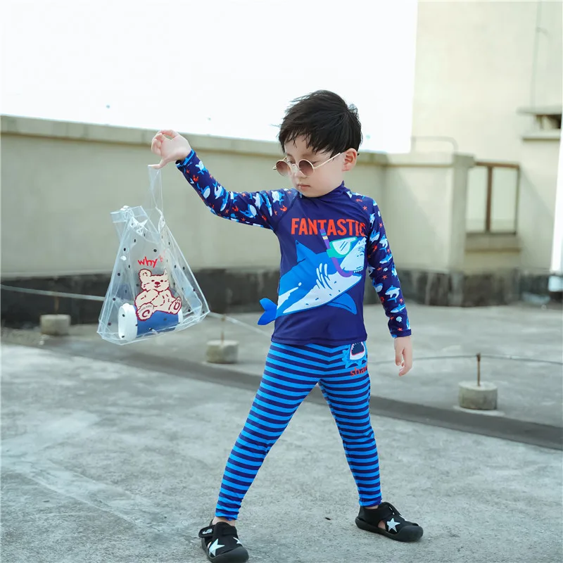 С защитой от солнца UPF 50 + с принтом мультяшных динозавров и акул, этот набор Рашгард сохраняет его милым и защищенным в течение всего дня.