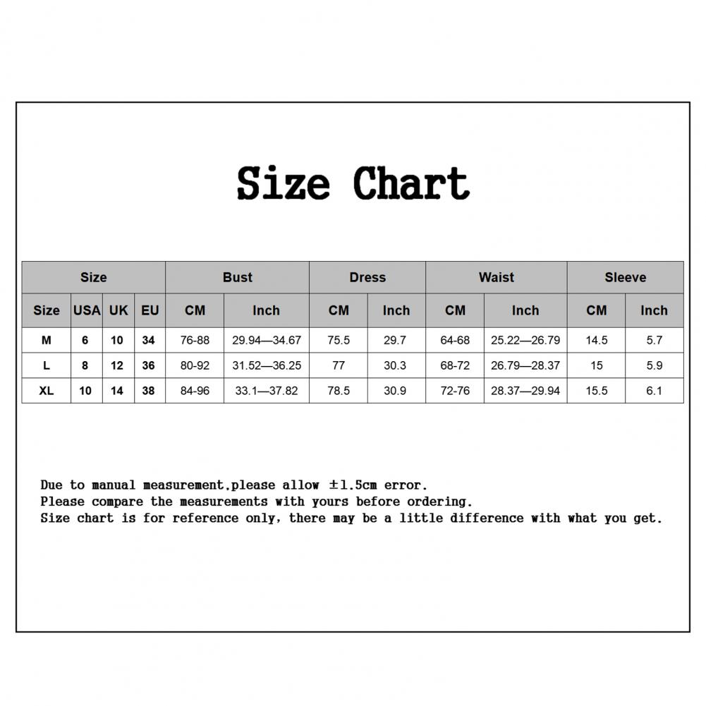 [Наш Размер M] Обхват груди: 76 см-88 см/29,9 "-34,6", обхват талии: 64 см-68 см/25,2 "-26,8", рукав: 14,5 см/5,7 ", Длина: 75,5 см/29,7" (прибл.)