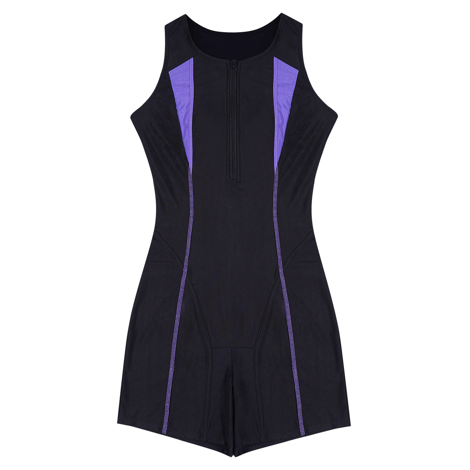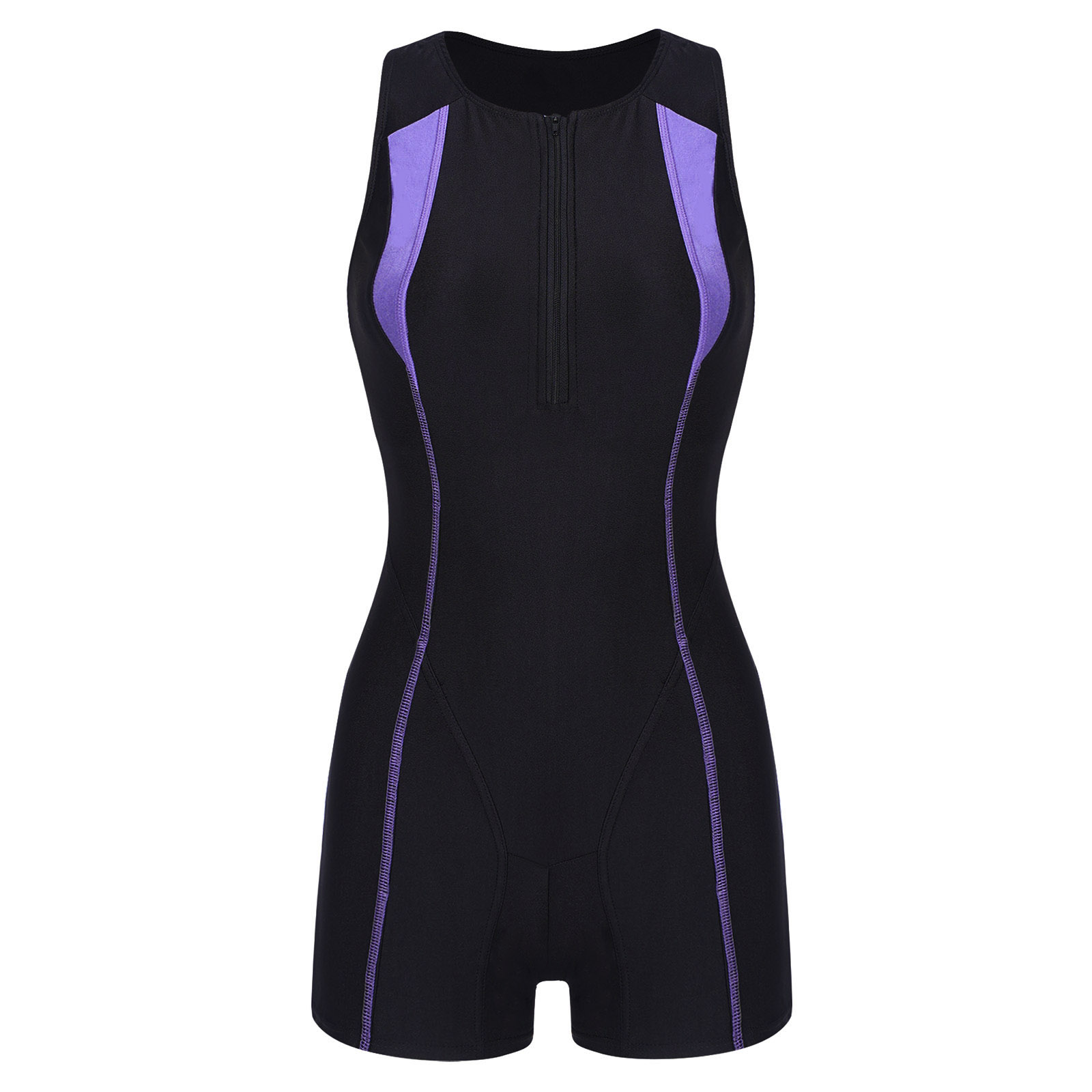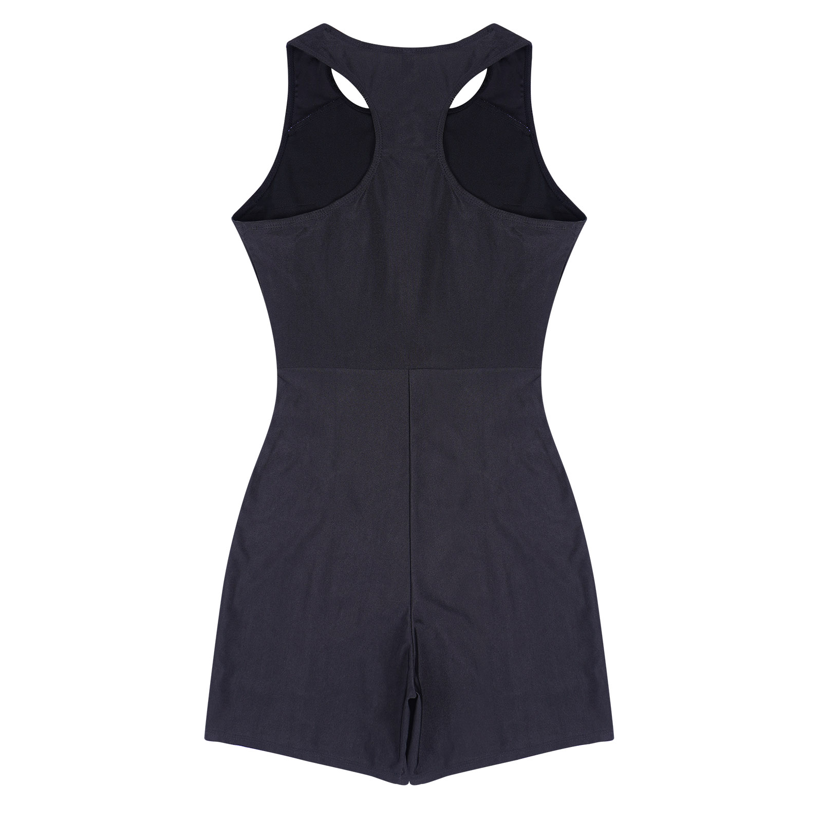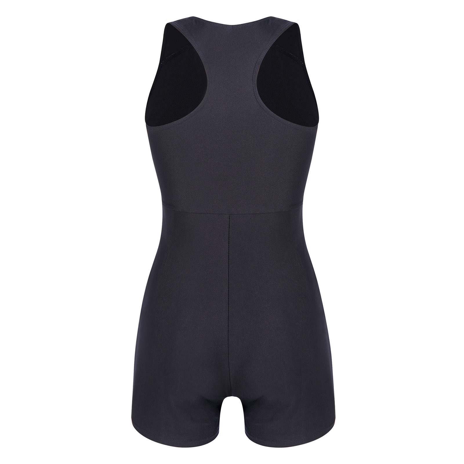 Женский Короткий комбинезон без рукавов с v-образным вырезом и контрастной застежкой-молнией спереди.