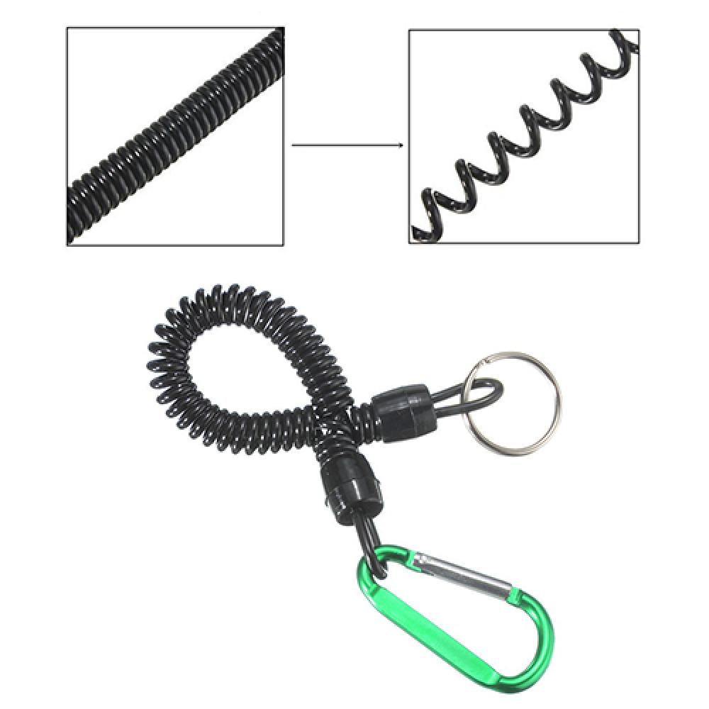 Алюминиевый карабин на одном конце и железное кольцо на другом конце могут прикрепить ваше снаряжение к поясу или лодке или каяку.