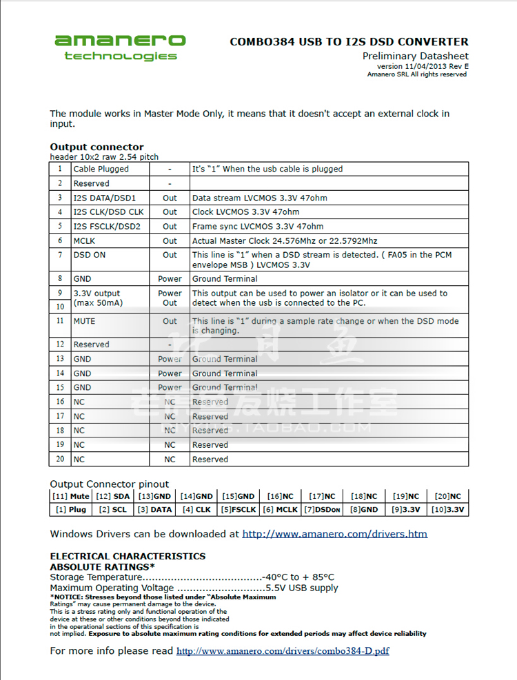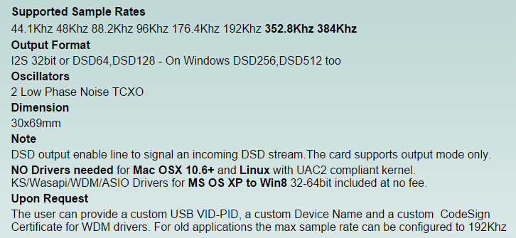 DSD output enable line to signal an incoming DSD stream.The card supports output mode only.