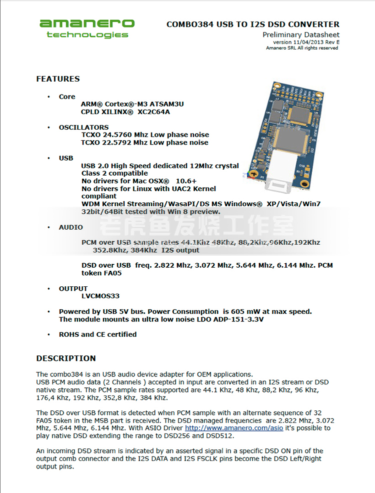 HiFi USB amplifier DAC Digital interface Of 100% Original Amanero Combo384 decoder USB to XLR output