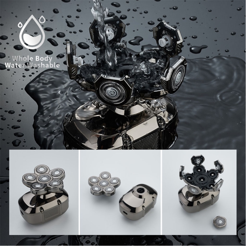 2. Шесть гибких лезвий. Эта ручная головка для мужчин имеет 6 гибких и точных головок, может эффективно увеличивать площадь контакта с лицом, бритье быстрее и полностью. 6D плавающая режущая головка может плавать вверх и вниз, чтобы больше соответствовать контурам лица, что обеспечивает вам комфортное и гладкое бритье.