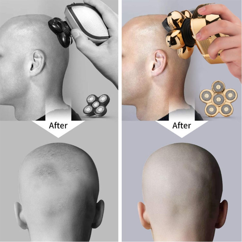 4. Влажное/сухое использование. Весь корпус бритв для головы для мужчин водонепроницаемый, предлагает Вам комфортное сухое бритье или освежающее влажное бритье с пеной для бритья или гелем. Вы даже можете использовать головную бритву в ванной комнате.