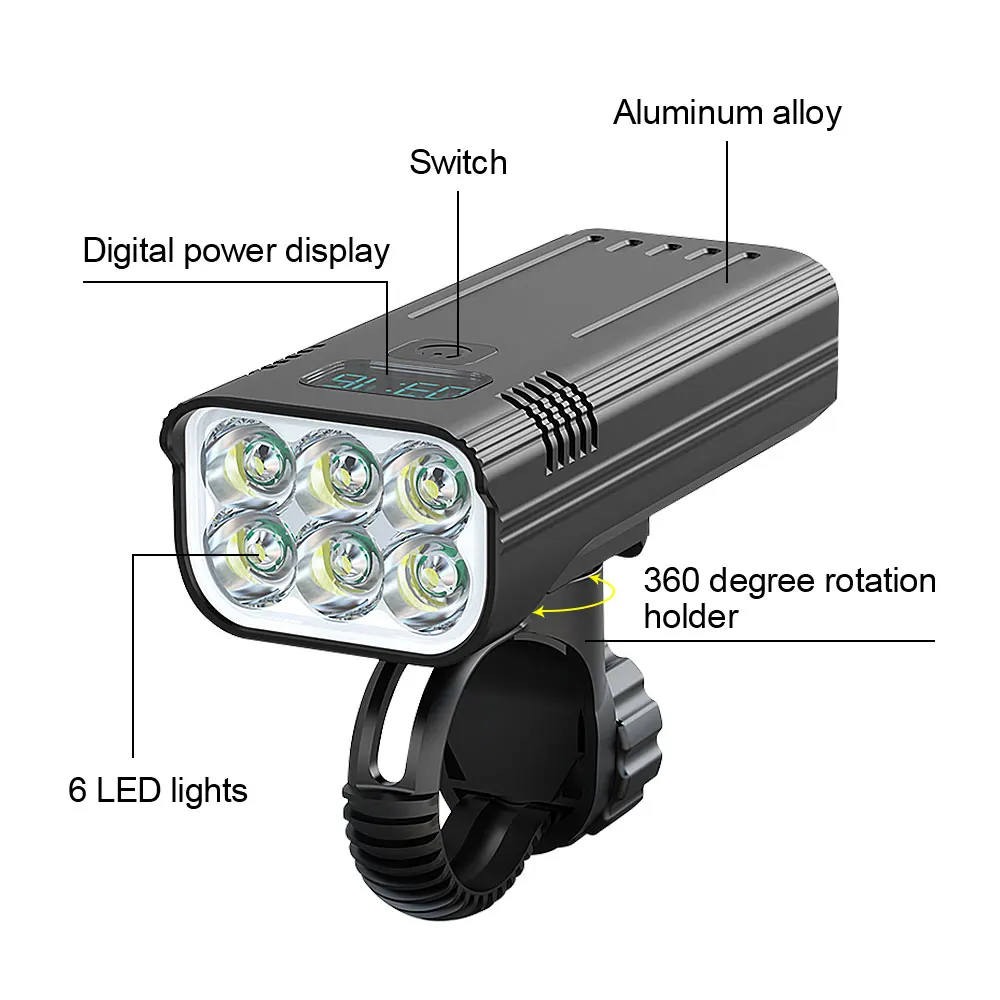 Название: T6 цифровой велосипедный светильник 5200 мАч USB Перезаряжаемый велосипедный светильник