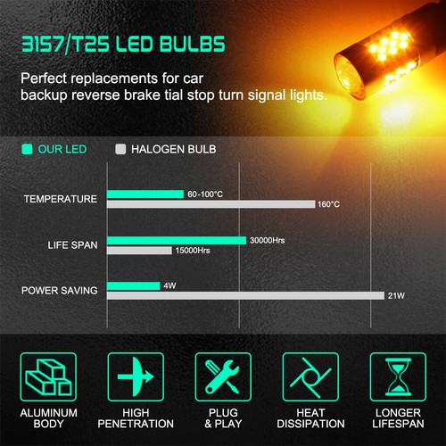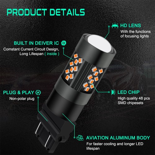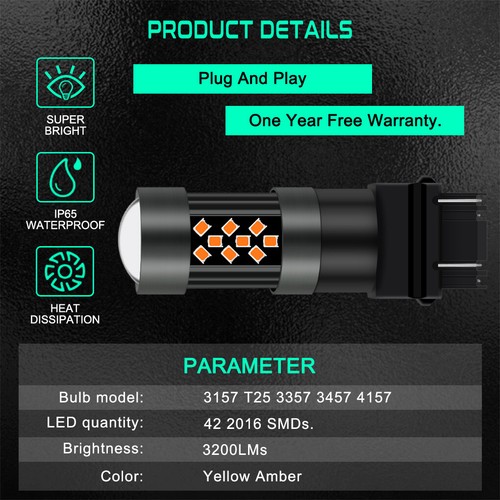 Этот товар представляет собой новейший дизайн 3157 пар светодиодный лампы 3000K Янтарный, светодиодный преобразователь с постоянной валютой с защитой от перегрузки, защитой от короткого замыкания и защитой от перегрева.