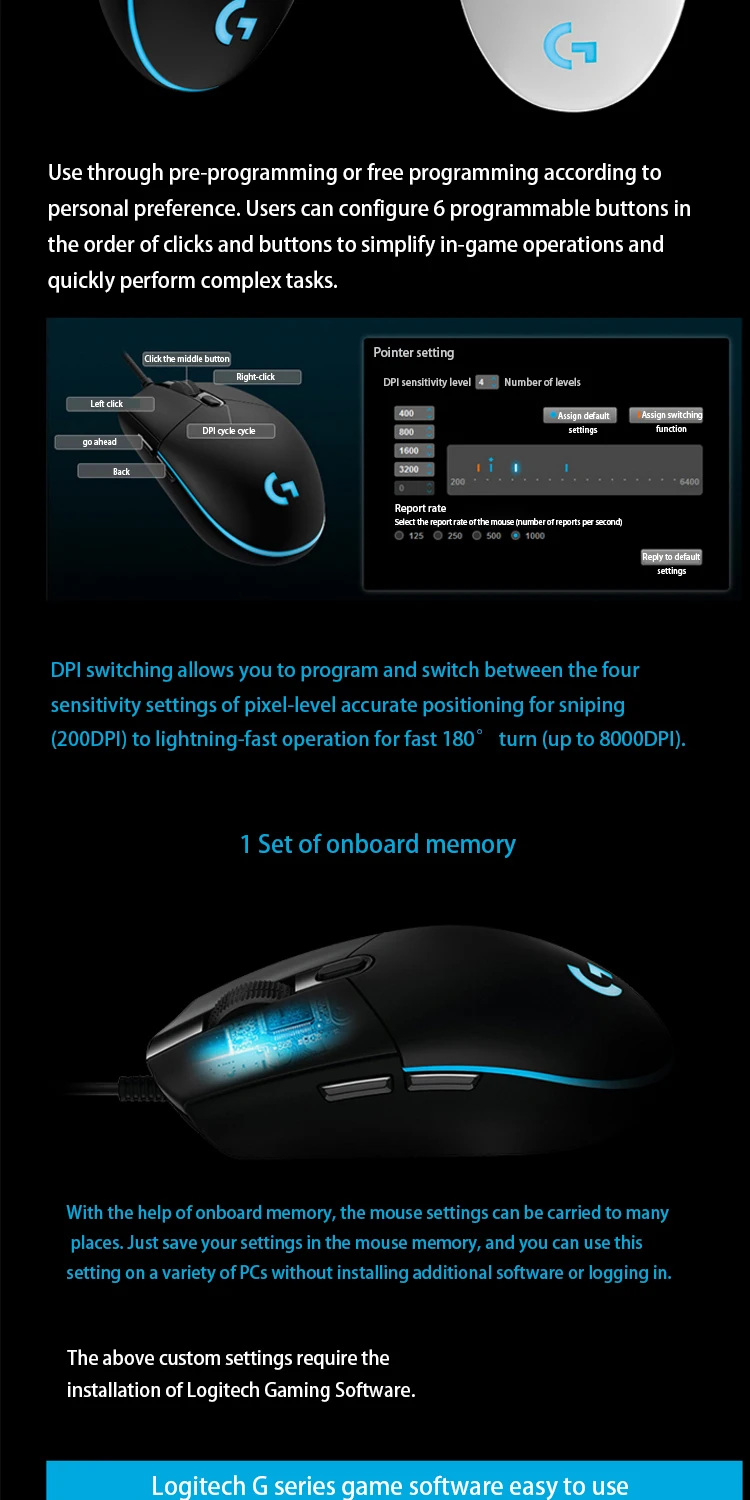 G102 отчеты 1000 раз в секунду, 8x быстрее, чем стандартные мыши. Это означает, что когда мышь перемещается или щелкает, ответ на экран практически Мгновен.