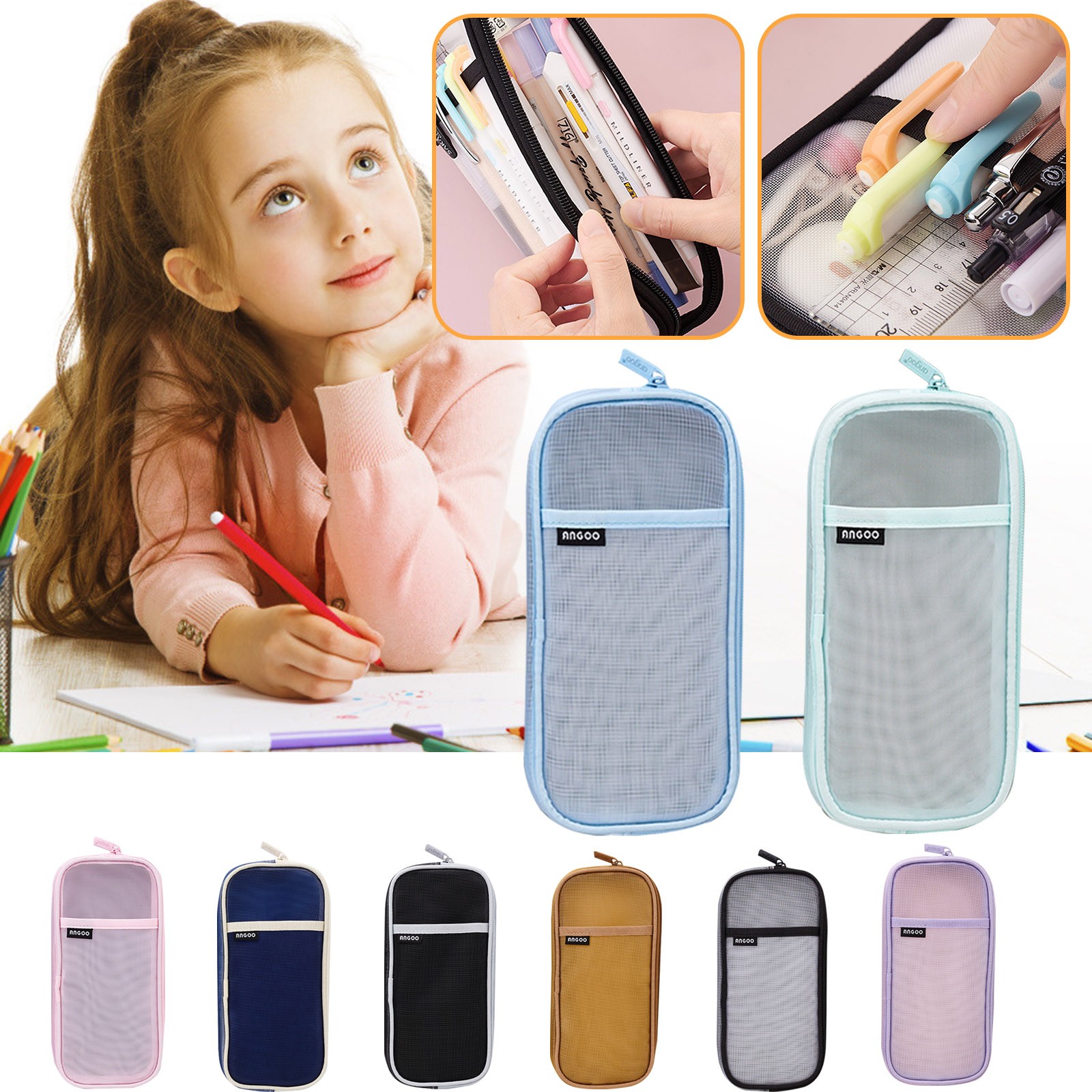 Сетчатый Чехол для карандашей с сеткой, сумка для хранения канцелярских принадлежностей с молнией, прозрачный чехол для путешествий, школы, Прозрачный чехол для карандашей, подарок