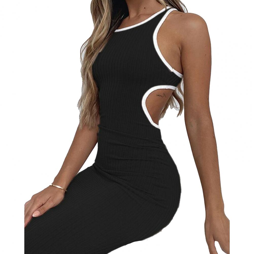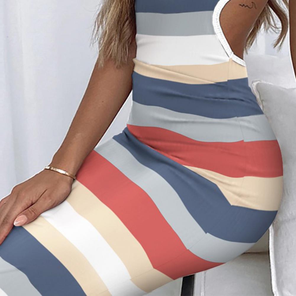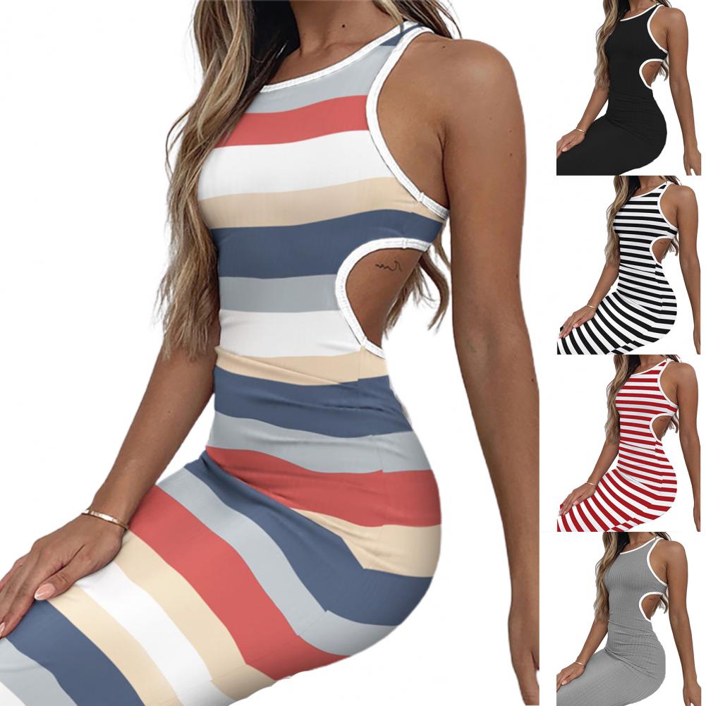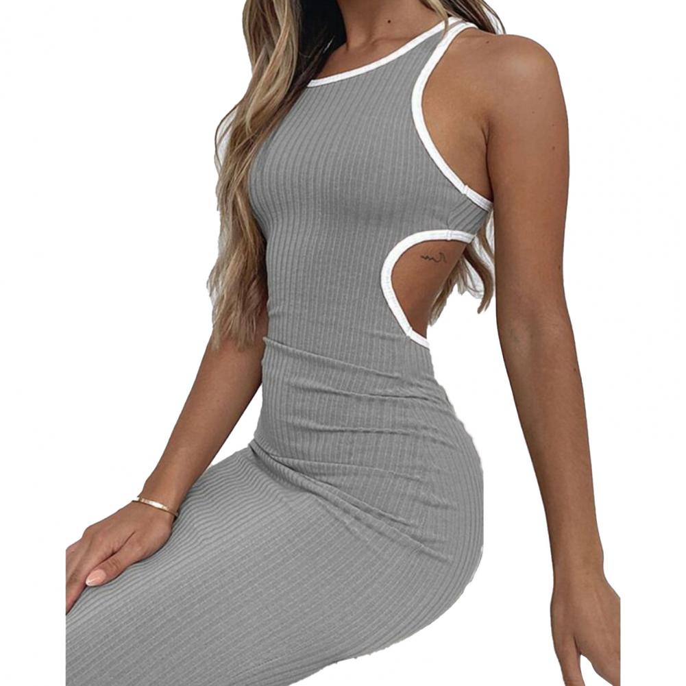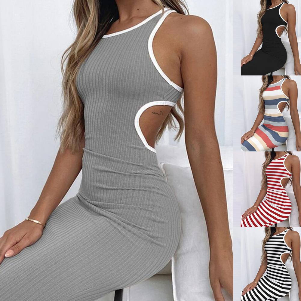 В горизонтальную полоску или однотонном дизайне это платье без рукавов является повседневным и модным. Дизайн с открытой спиной делает это платье миди сексуальным и привлекательным.