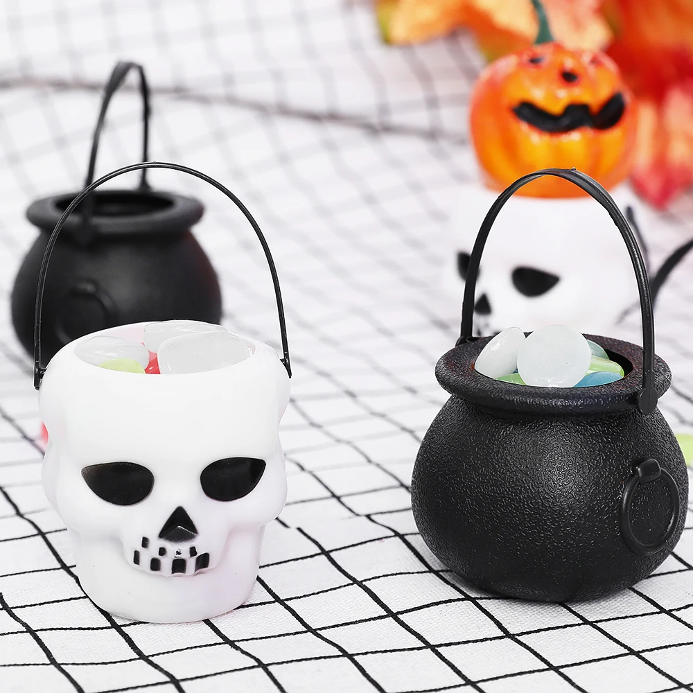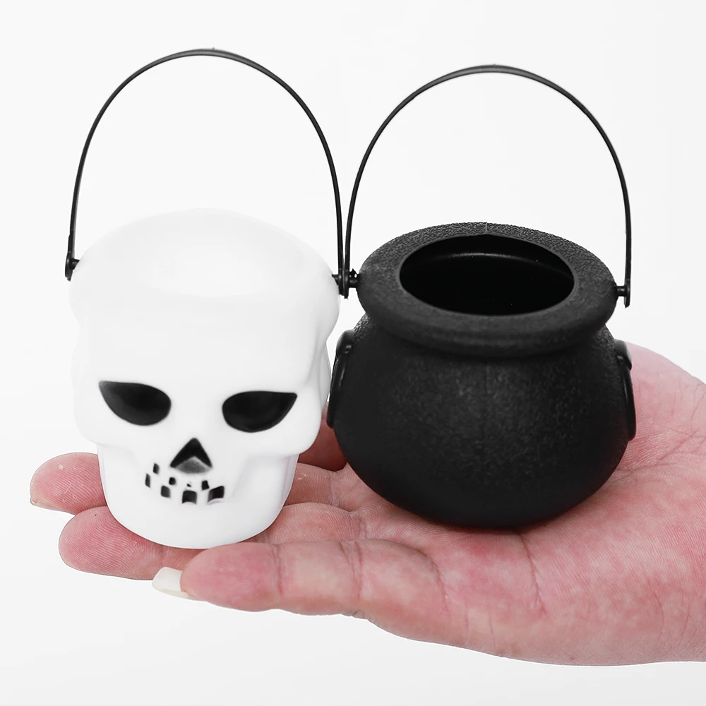 5 шт./лот, Хэллоуин, белый череп, черная ведьма, пластиковые конфеты, ведро, банка, трюк или лечение, Хэллоуин, вечерние украшения, реквизит для детей