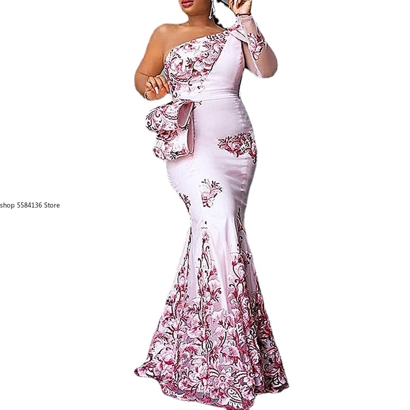 One Shoulder Pink Celebrate Party Evening Gowns Event Robes African Fashion Summer Autumn Vestidos Maxi Robes