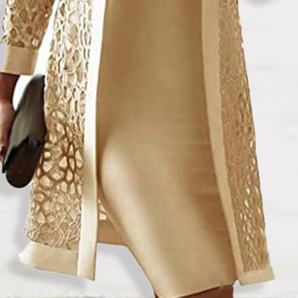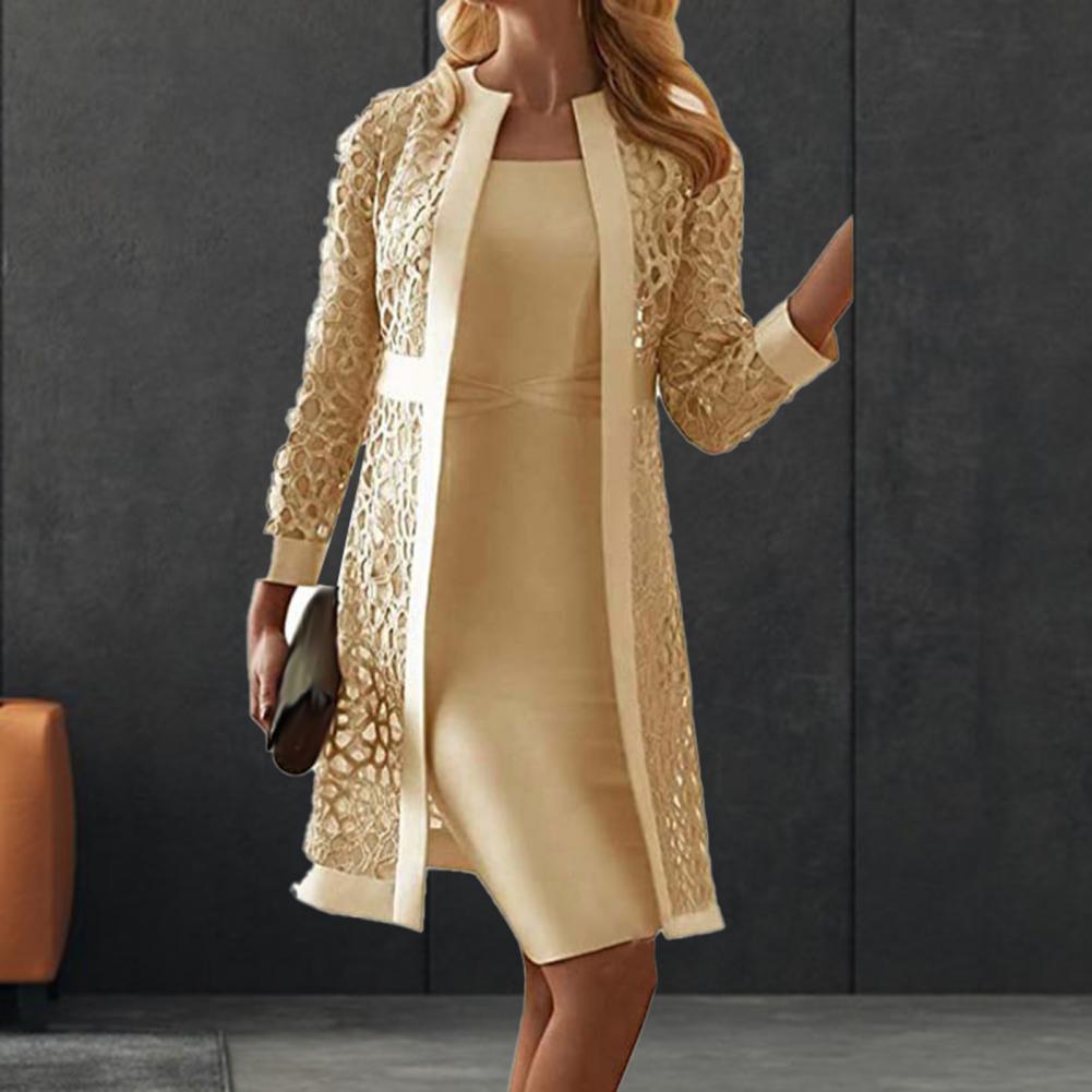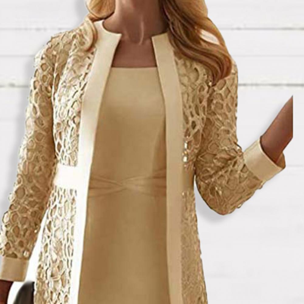 1 комплект, пальто, платье, комплект, длинный рукав, кружево, элегантное, одноцветное, с круглым вырезом, верхняя одежда, платье для свадьбы