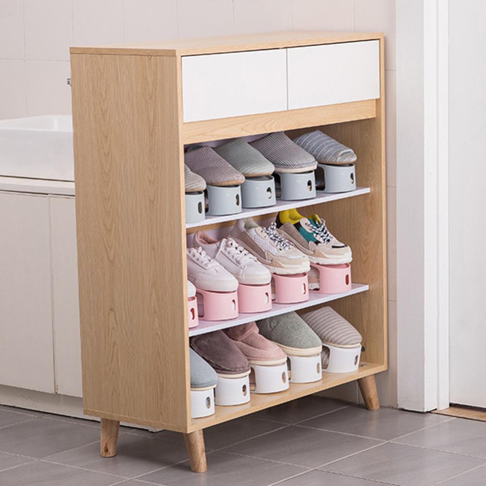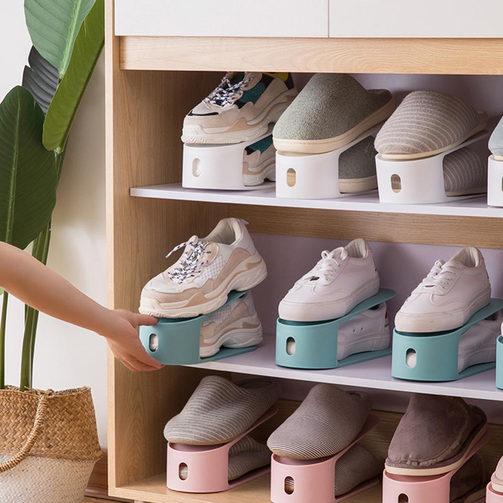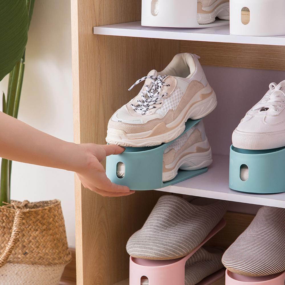 Двухслойный дизайн, так что вы можете положить 2 обуви на стойку, это экономия пространства.