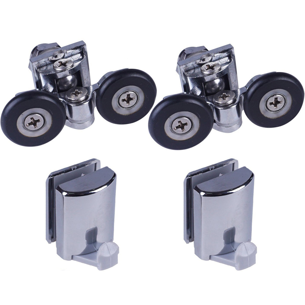2х двойные верхние ролики и 2х нижние Пружинные крючки Описание: легкое скольжение Замена душевой двери ролик