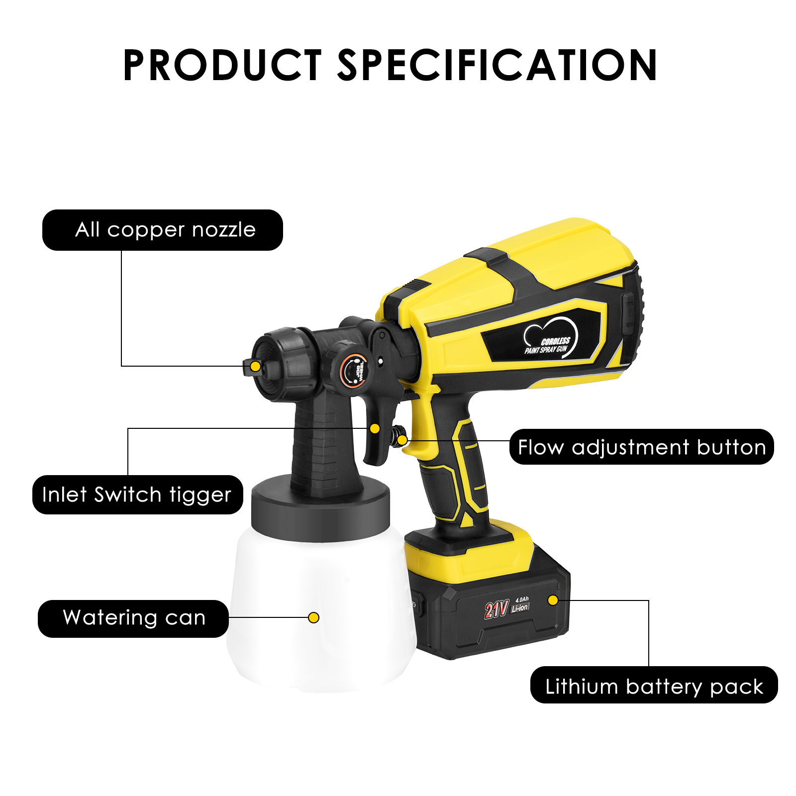 [Очень подходит для высоких мест и улицы]Наш беспроводной распылитель батареи делает вашу работу более удобной и легкой! Особенно когда вы рисуете большие круглые предметы или работаете на открытом воздухе. С помощью беспроводного распылителя краски вы можете свободно работать, удаляя шнур питания. Это более чем в 10 раз быстрее, чем кисть, и вы можете быстро закончить Рисование задач во время работы легко.
