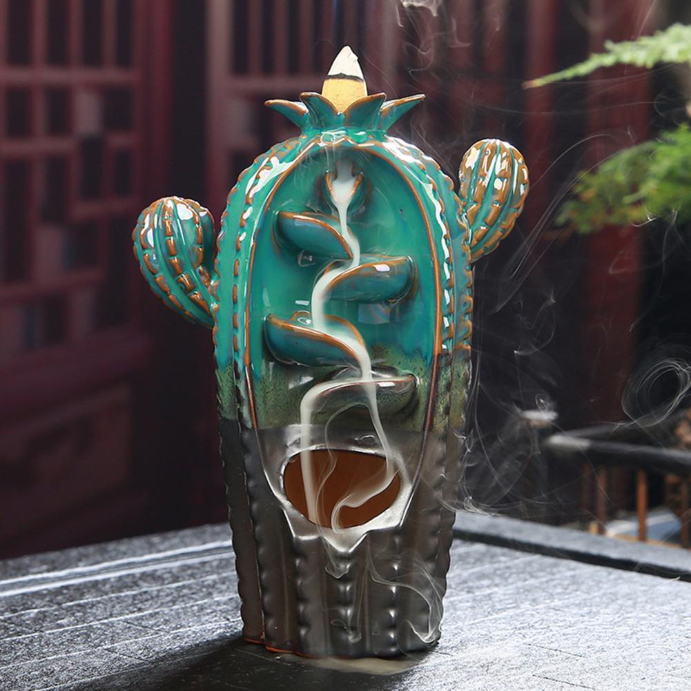 Курильница, декоративный кактус, форма растения, изысканное мастерство, водопад, подставка для благовоний, декор для комнаты йоги