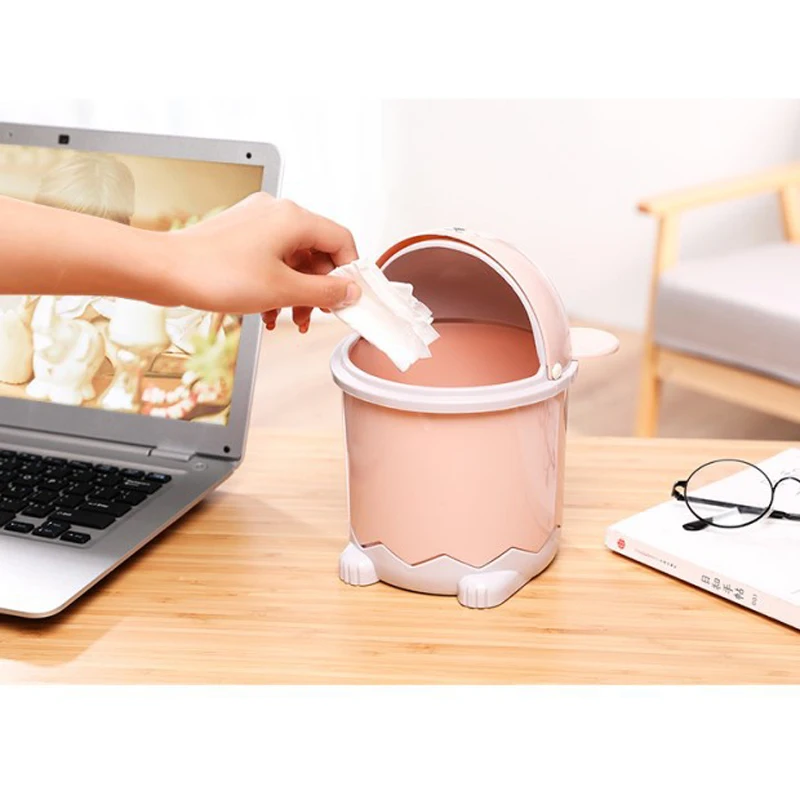 Креативный милый Настольный мусорный столик для дома, журнальный столик для гостиной с крышкой, маленькая бумажная корзина, мини-откидной пластиковый мусорный бак