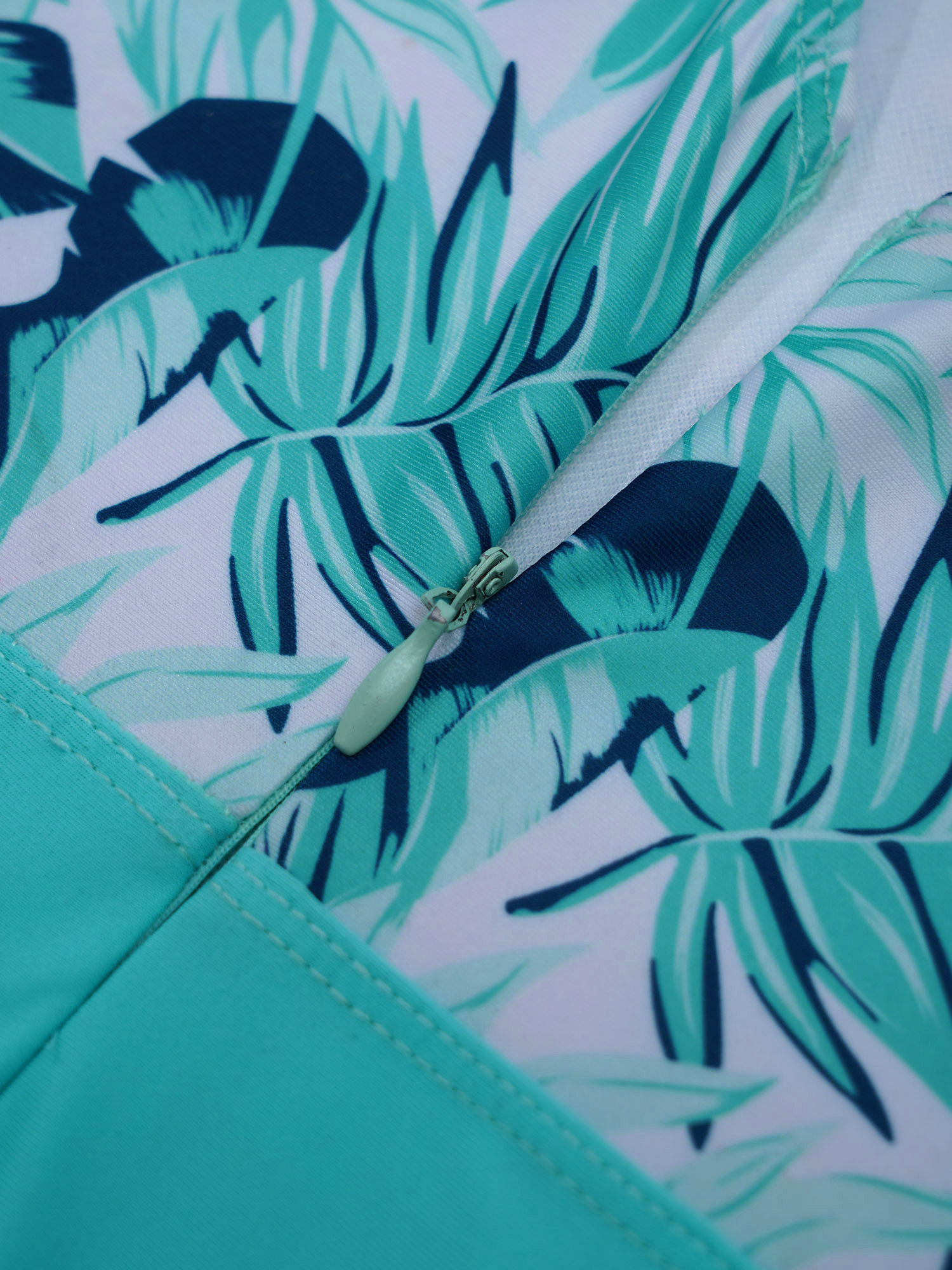 The slim fit leotard has sleeveless, halter and a buckle at nape, beautiful print pattern on top, mesh patchwork at waist to keep you cool, full length.