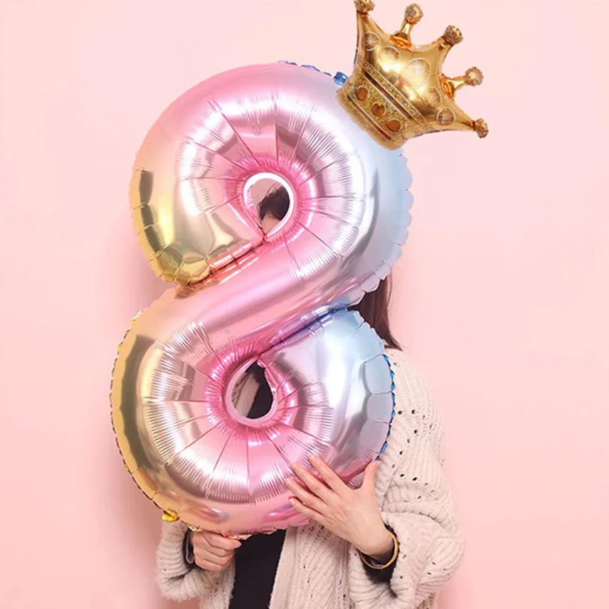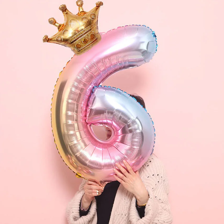Название продукта: 32-дюймовый градиент Цвет детское платье для дня рождения украшение Корона воздушный шарик из фольги в форме
