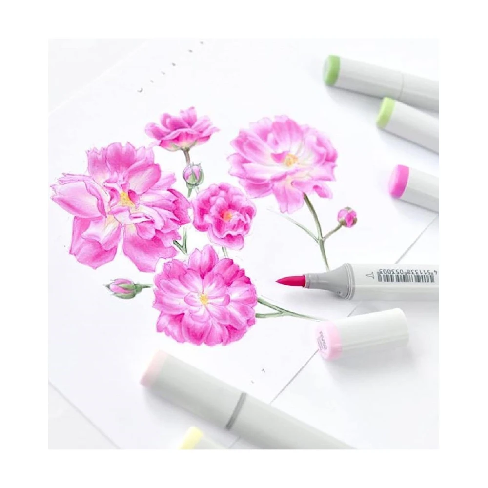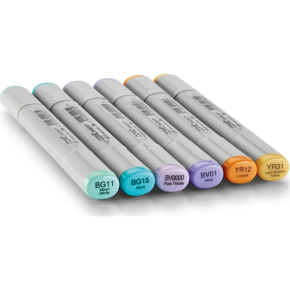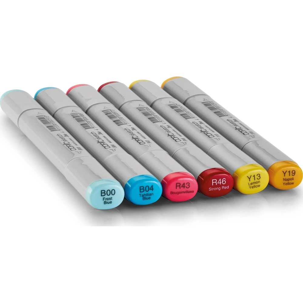 Copic - легендарный производитель маркеров на спиртовой основе из Японии. Первая серия маркеров Copic вышла в 1987 году. В настоящее время маркеры Copic представлены в более чем 55 странах мира. Маркеры Copic чрезвычайно популярны у художников-иллюстраторов, поклонников комиксов и манга, в сфере коммерческого дизайна (fashion-дизайн, промышленный, ландшафтный дизайн). Двухсторонний маркер Copic Sketch от японского бренда Copic- это популярный инструмент для скетчинга и иллюстраций среди профессиональных художников, лидер продаж в мировом масштабе Маркеры этой серии обладают сменными наконечниками. Для замены можно использовать пишущие узлы разной формы Маркер Copic Sketch имеет два прочных наконечника: кисть (Super Brush Nib) и перо (Medium Broad) Super Brush Nib идеально подходит для изящной работы. Силой нажатия можно контролировать ширину линии: от очень тонкой до максимально широкой Medium Broad — срезанный и широкий наконечник для закрашивания больших поверхностей и нанесения толстых линий Спиртовые чернила маркеров Copic Sketch не смываются водой и не имеют неприятного запаха. Copic Sketch взаимодействует с бумагой лучше, чем маркеры на водной основе: поверхность не деформируется, а приобретает красивый бархатистый вид. За счет быстрого высыхания чернил маркеры этой серии идеально подходят для письма и зарисовок на глянцевой бумаге. Овальная форма маркеров Copic Sketch современна и минималистична, их удобно держать в руке, и они не скатываются со стола. На каждом конце маркера нанесена маркировка, позволяющая быстро определиться с выбором необходимого наконечника Буквенно-цифровой код на корпусе не стирается со временем Маркеры Copic Sketch идеально подходят для любого творческого процесса - от быстрых набросков и записей на прогулке, фешн-моделирования и интерьерного скетчинга до создания авторских открыток, комиксов и манга.