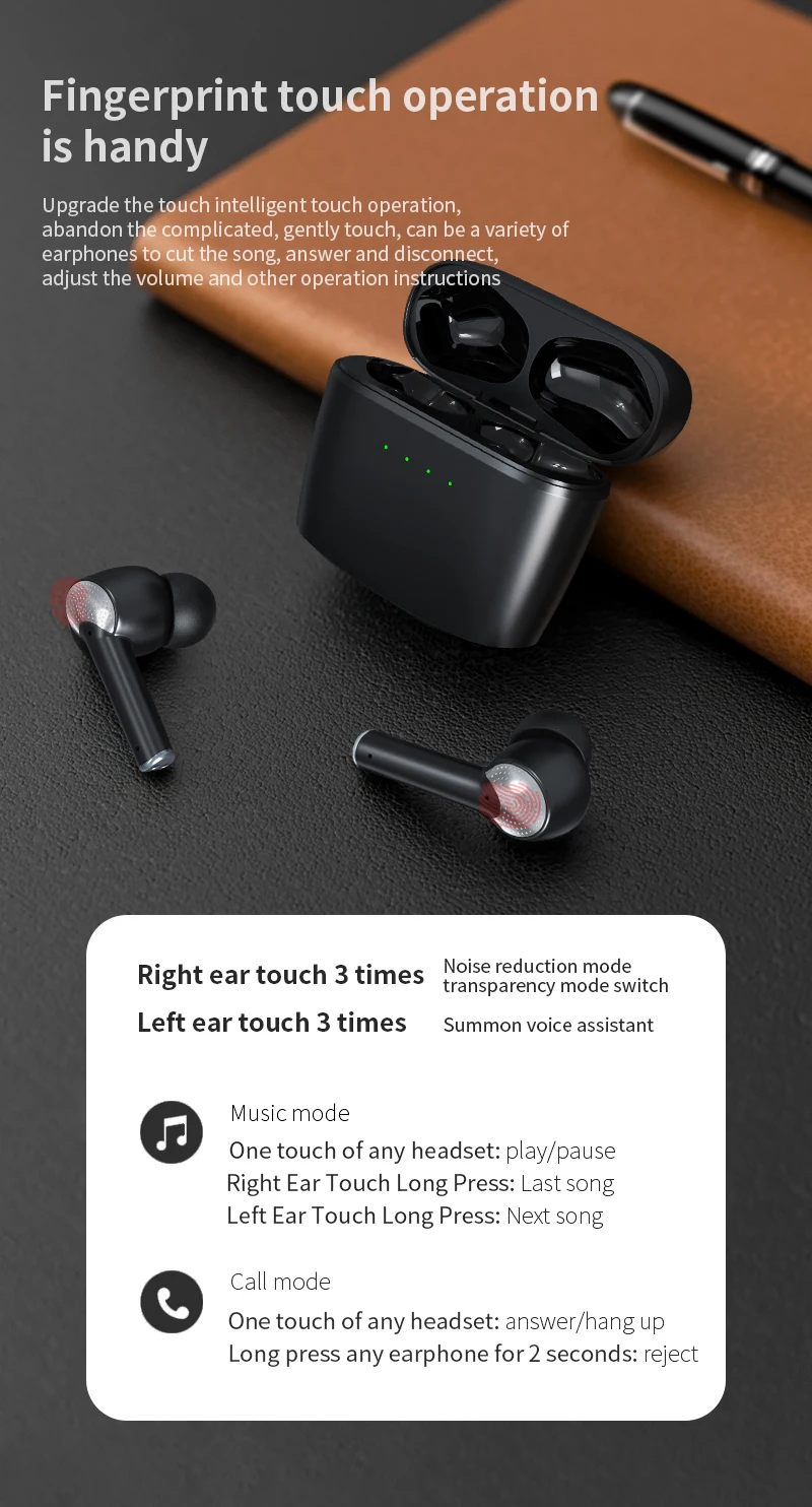 1. Реальный режим активного шумоподавления ANC может четко слышать эффект шумоподавления, который отличается от поддельного шумоподавления TWS наушников на рынке.