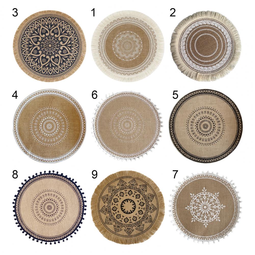 Есть Девять различных стилей для вас на выбор, и диаметр этой салфетки составляет около 38 см.