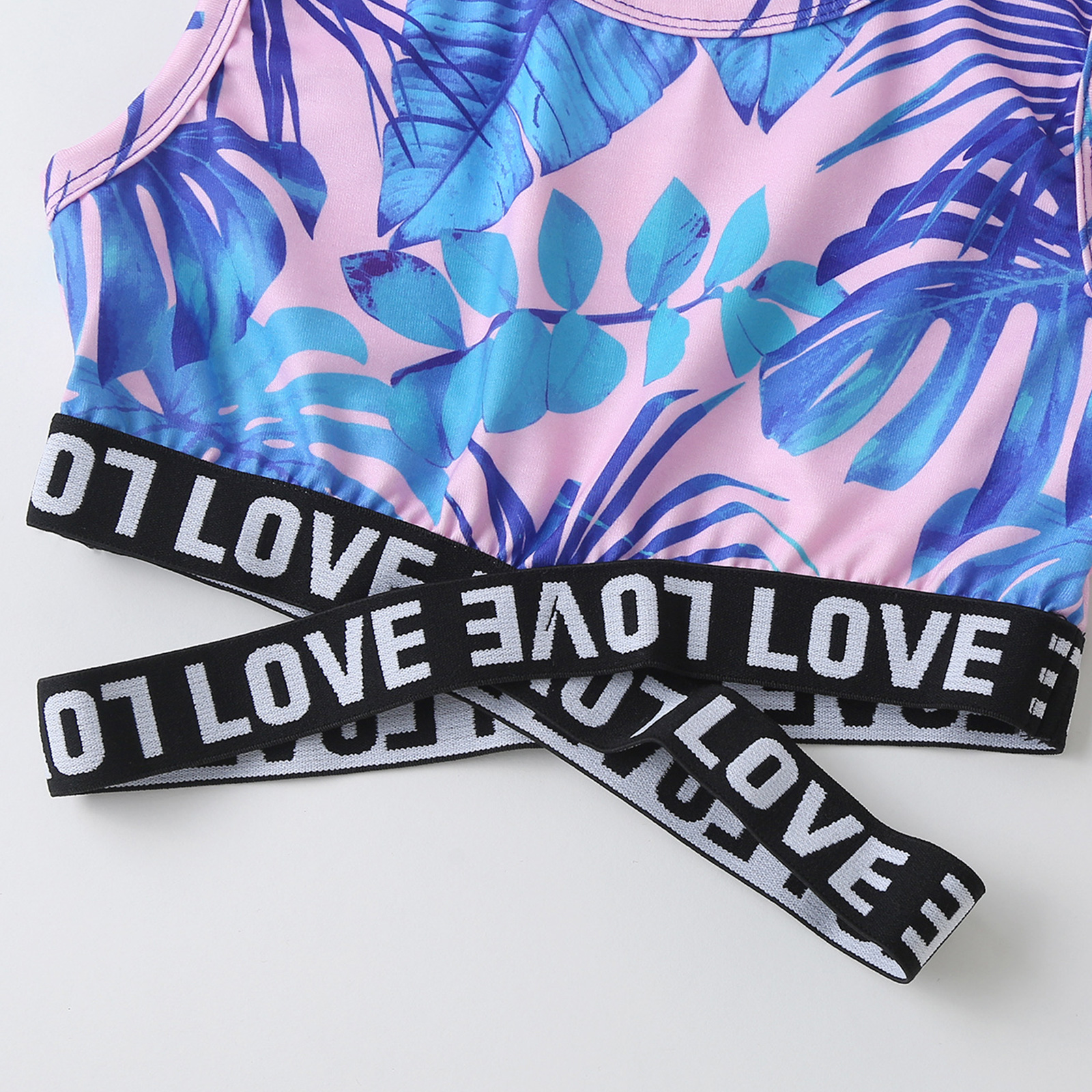 Без рукавов, с поперечным поясом вокруг талии, с принтом листьев и букв, с эластичной резинкой на талии, делают девочек модными и энергичными.