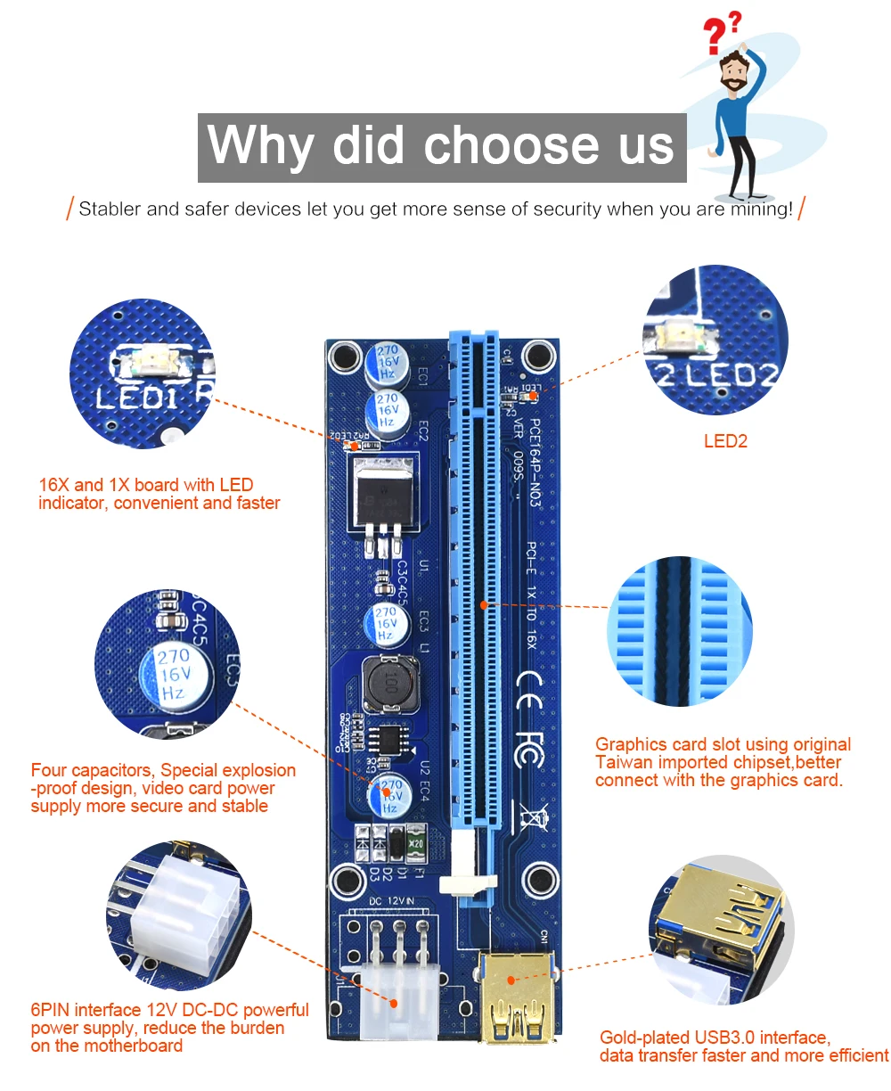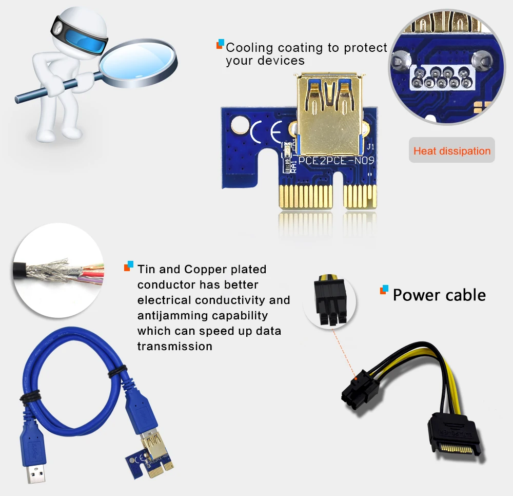 TISHRIC PCIE Riser 009S PCI-E 1-4 PCI Express Riser Card Adapter USB 3.0 графика УДЛИНИТЕЛЬ шнур адаптер карта для BTC Mining