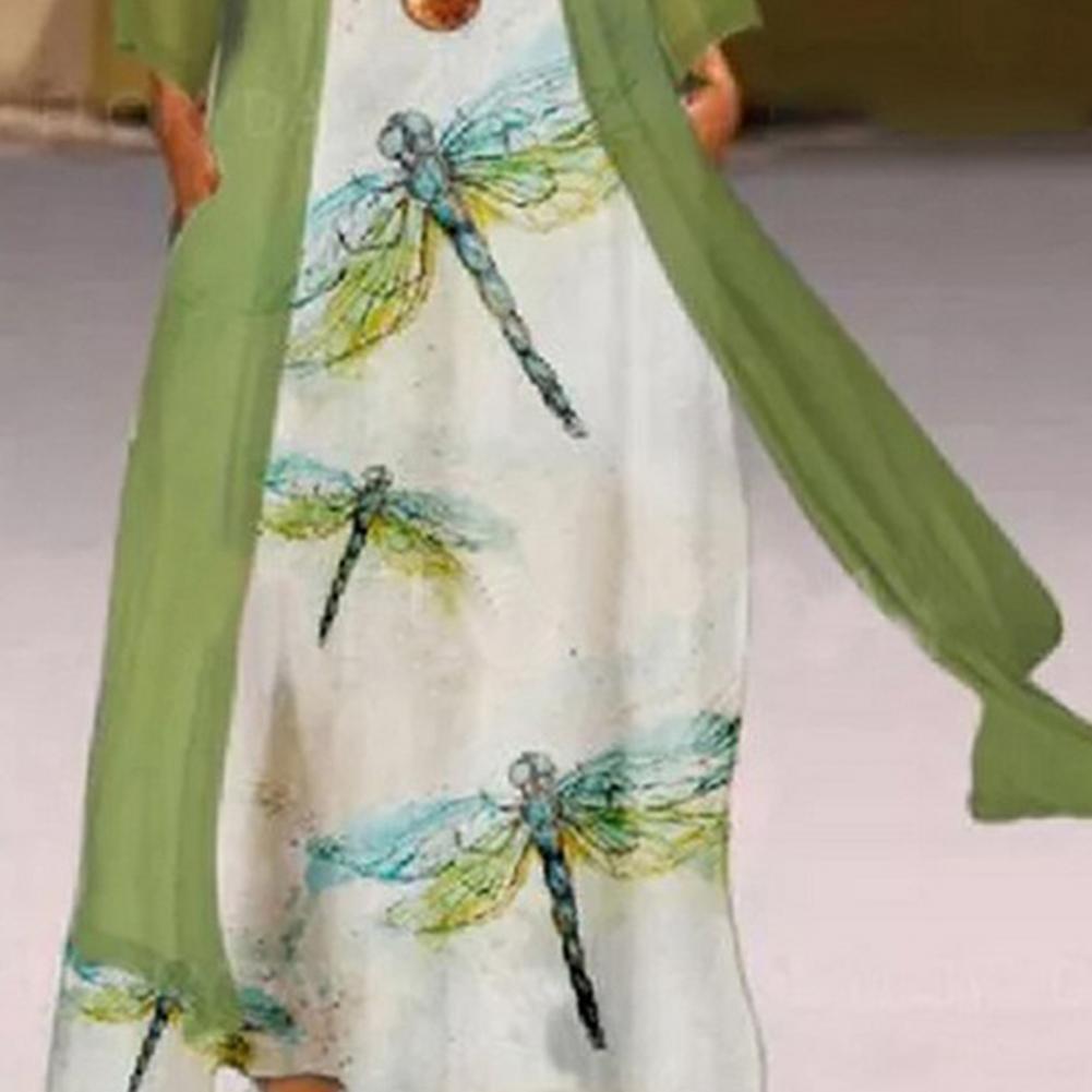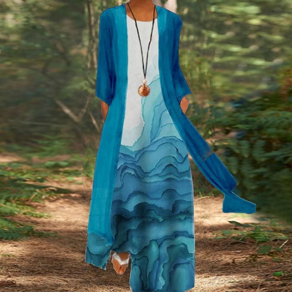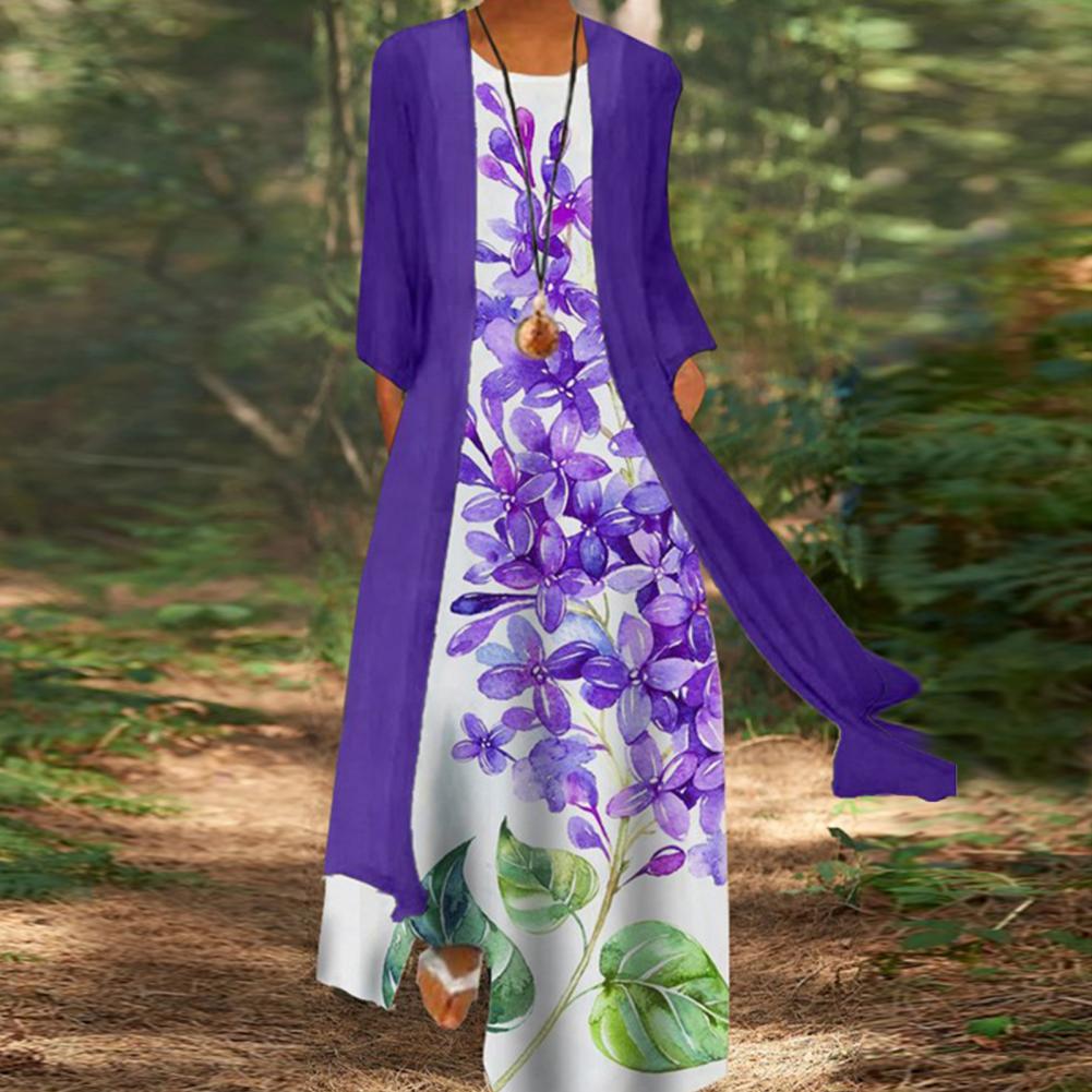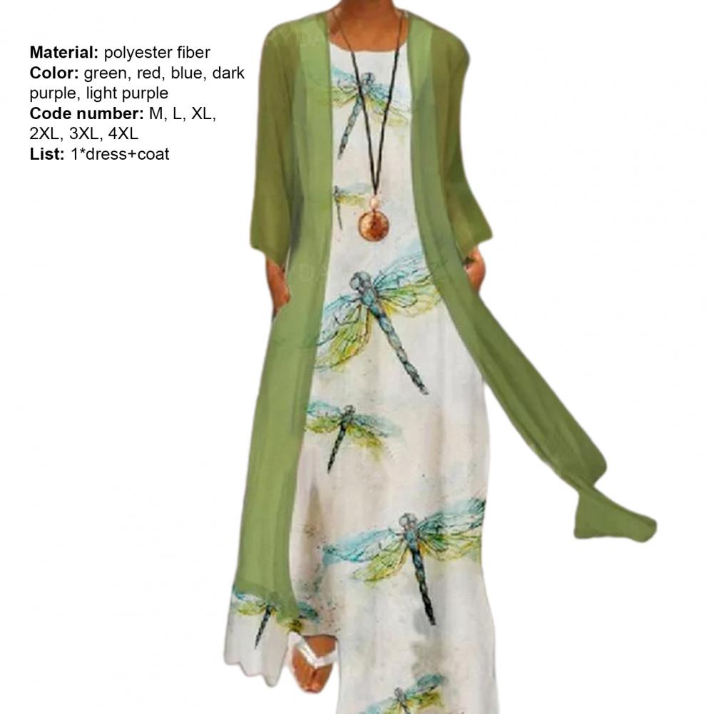 1 комплект, кардиган, платье, комплект, цветочный принт, Длинная женская Свободная верхняя одежда, без рукавов, с большим подолом, платье для повседневной носки, халат, женское, элегантное, повседневное