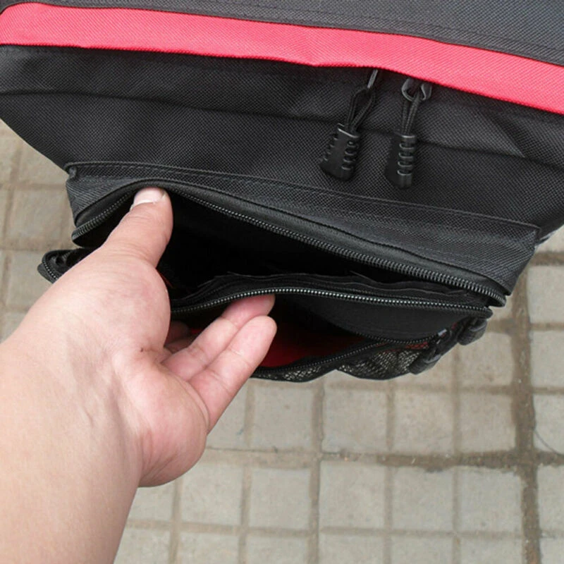 Велосипедный седельный пакет имеет парные сумки, с каждой стороны 3 кармана на молнии и 1 сетчатый карман; Одна сторона не отделяется от другой, он висит с обеих сторон, центр тяжести очень низкий,