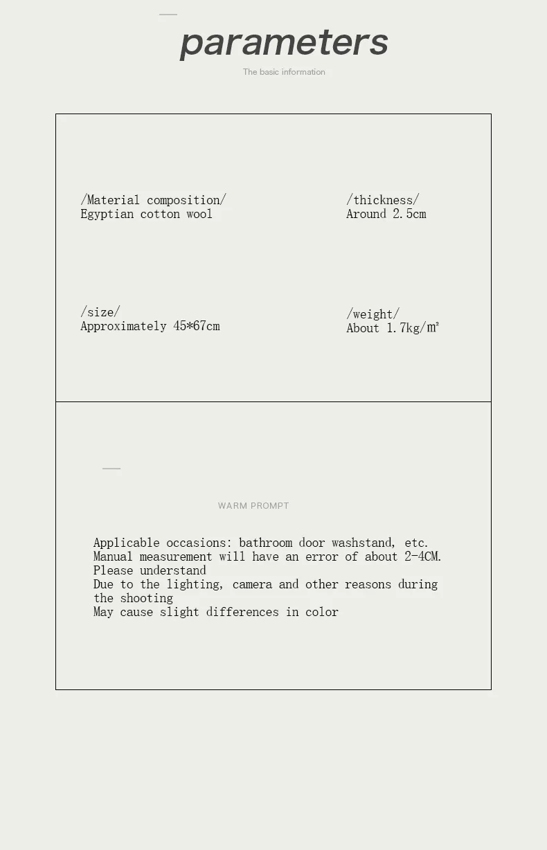 1. Материал: ковер изготовлен из полиэфирного волокна, мягкий и удобный, приятный для кожи и экологически чистый, влагопоглощающий, дышащий и водопоглощающий материал.