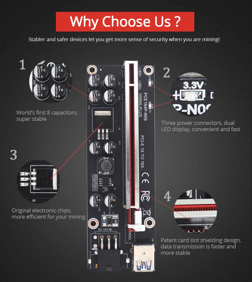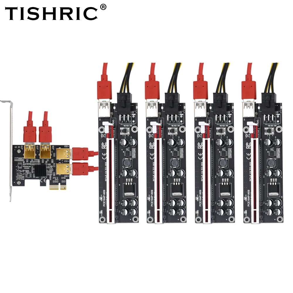 TISHRIC PCI-E Riser 009s 1-4 PCI Express Riser Card мультипликатор концентратор адаптер PCIE Riser 009s Plus PCIE x16 Express для майнинга