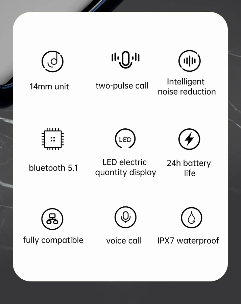 Многофункциональный дизайн корпуса наушников обеспечивает водонепроницаемый уровень жизни. Не бойтесь дождя и пота, потливости, не бойтесь ветра и дождя.