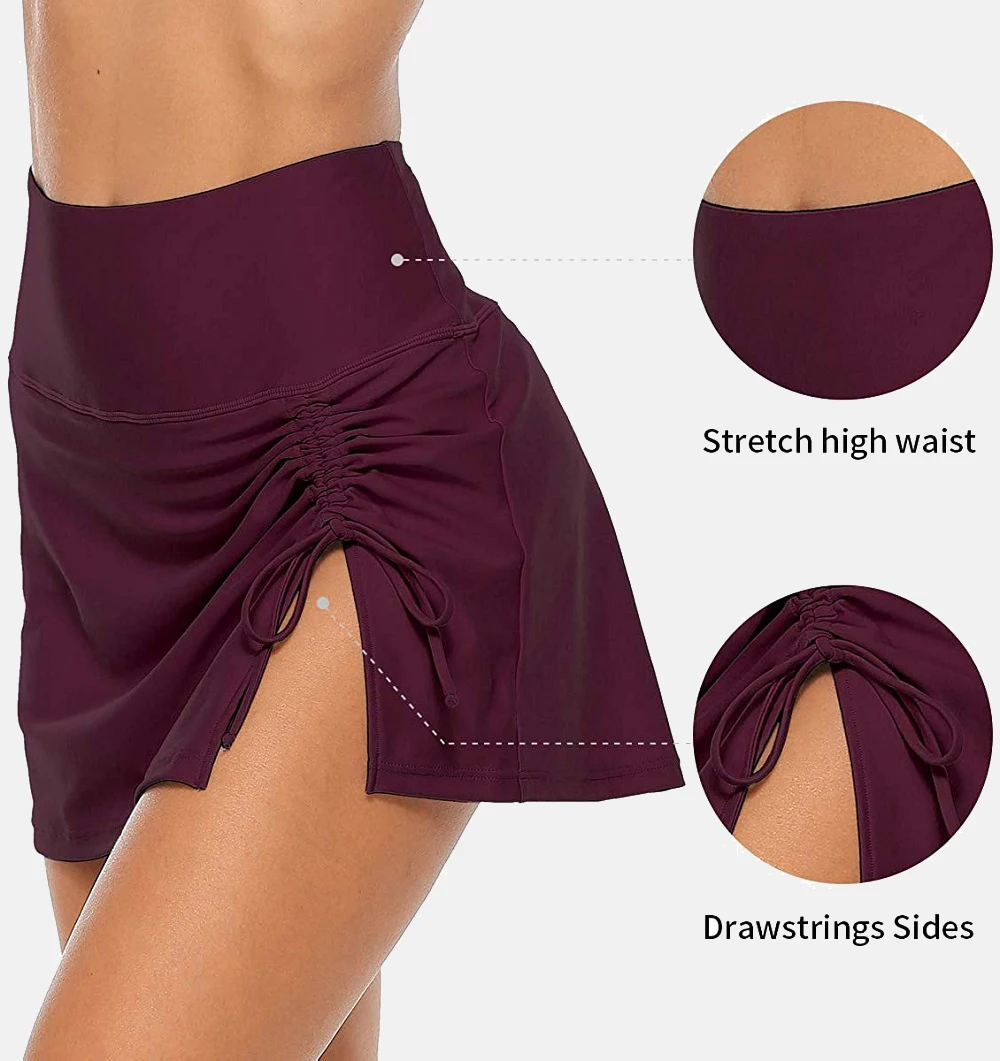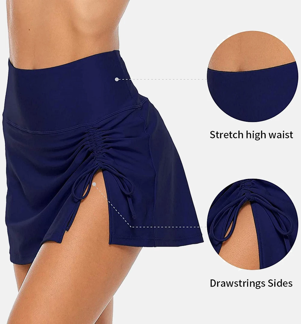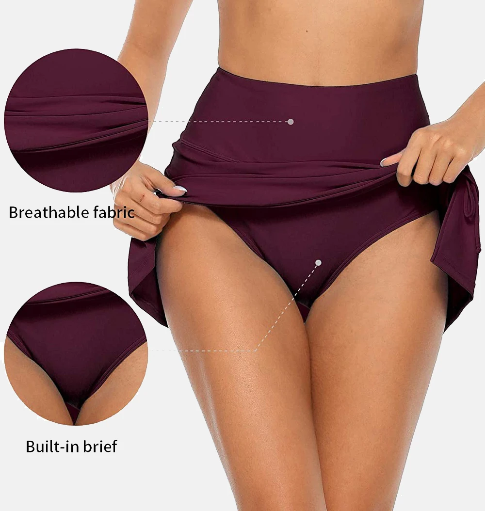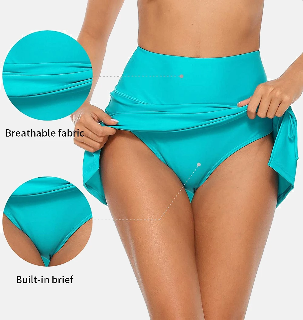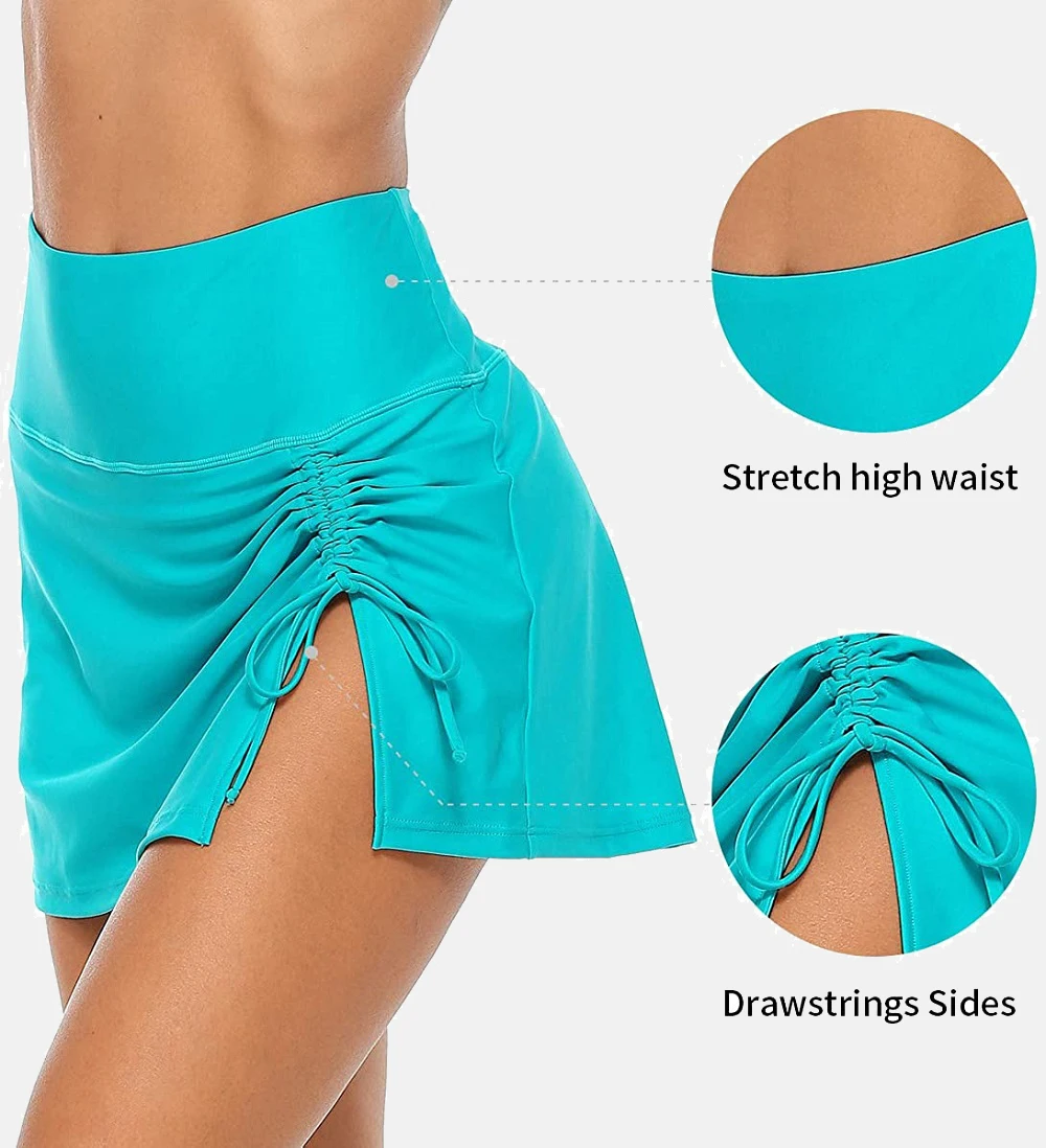 Женская юбка для плавания Anfilia со встроенными трусиками с высокой талией и разрезом, Спортивная юбка для плавания с завязками