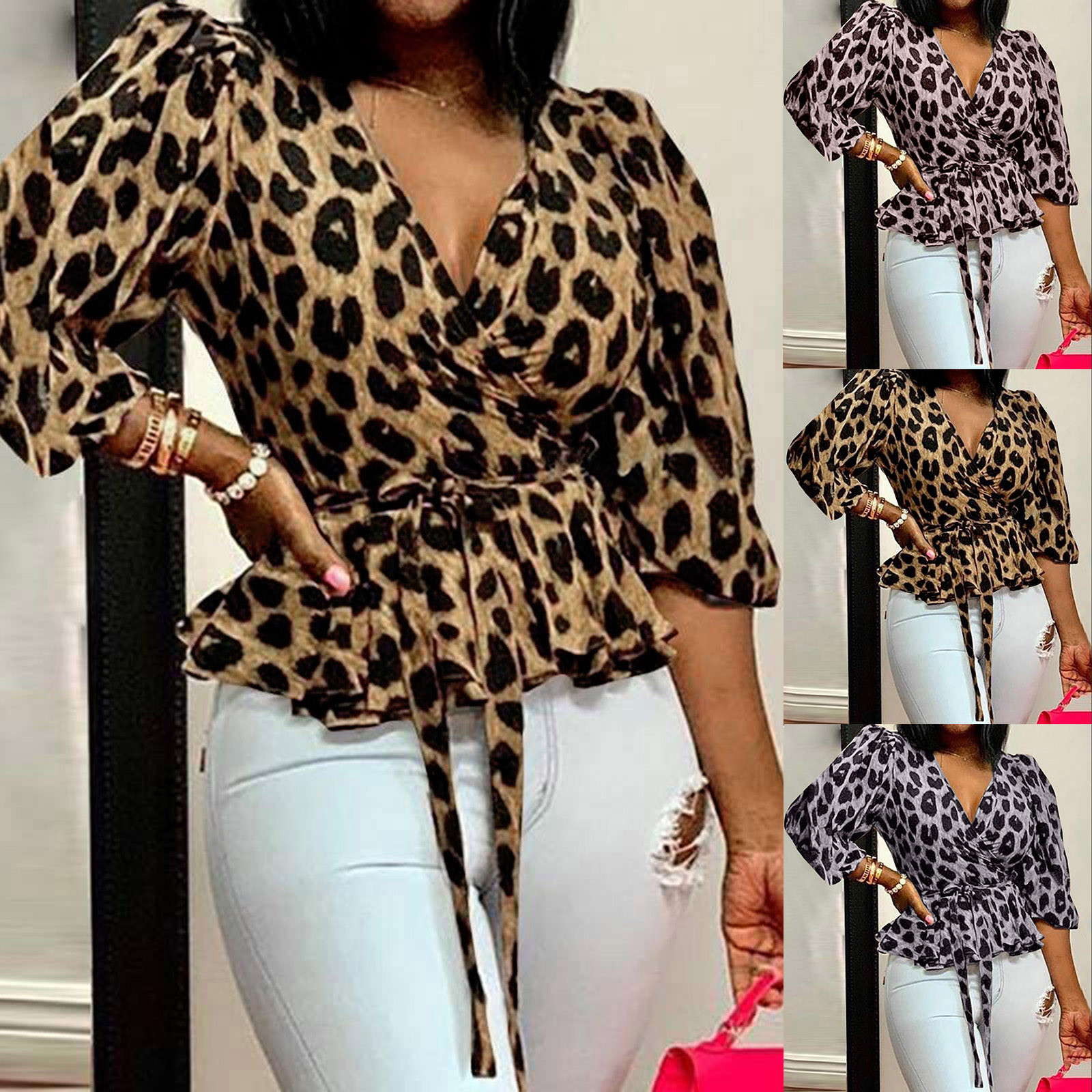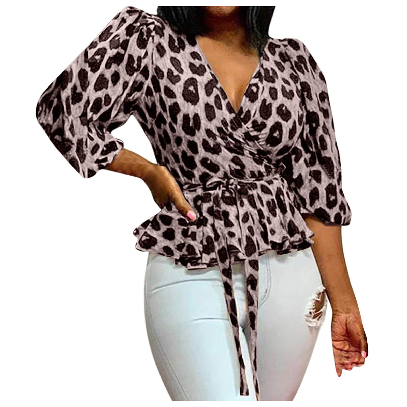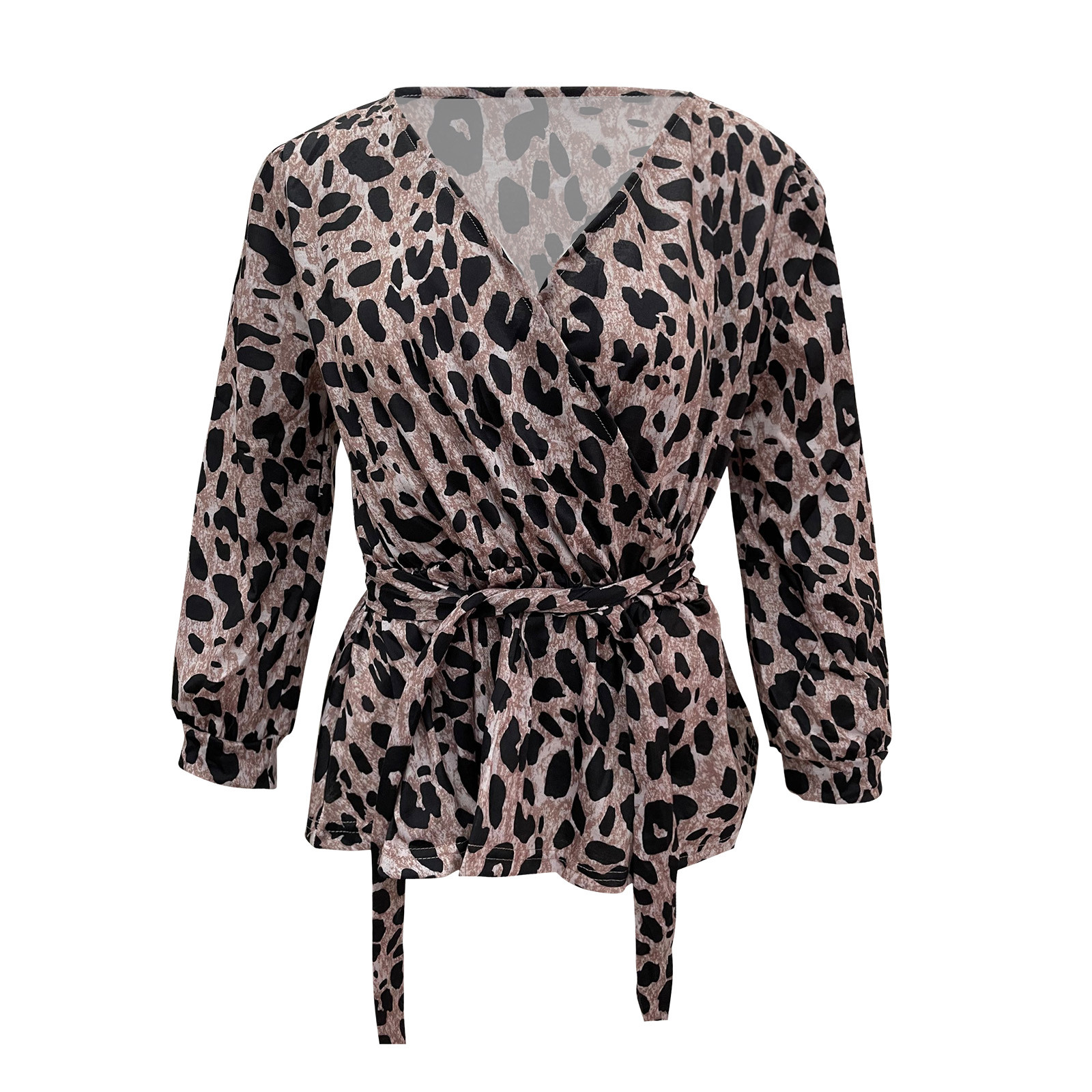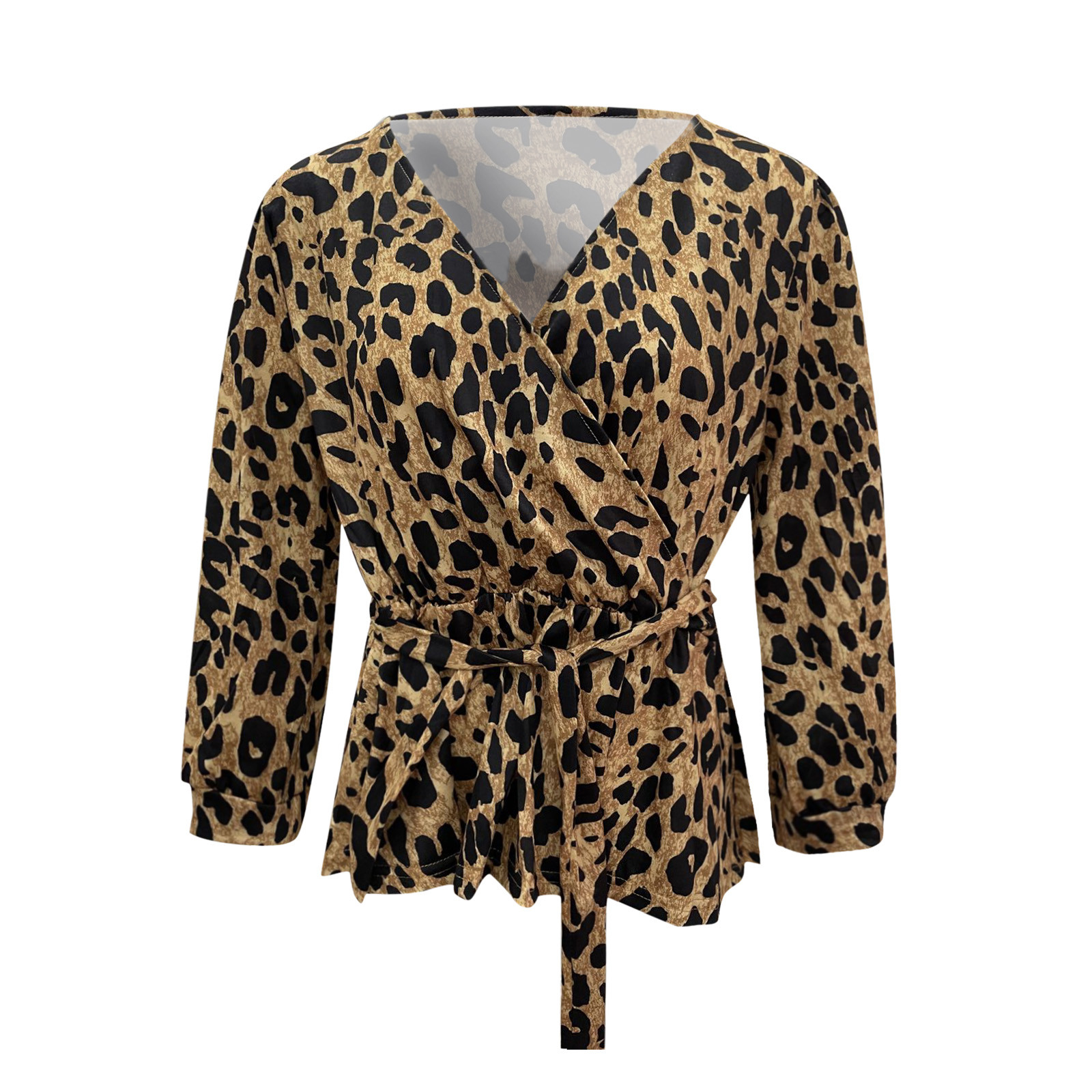 Женские леопардовые Топы с длинным рукавом и v-образным вырезом, Свободные повседневные футболки
