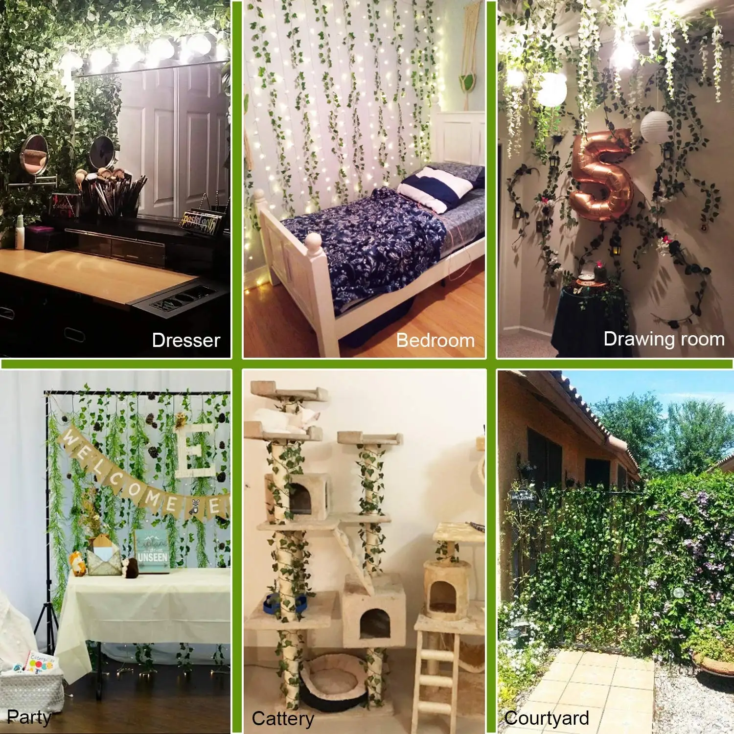 1. 24 пряди искусственного плюща лозы висячего растения. Каждая зеленая лоза длиной почти 7 футов,