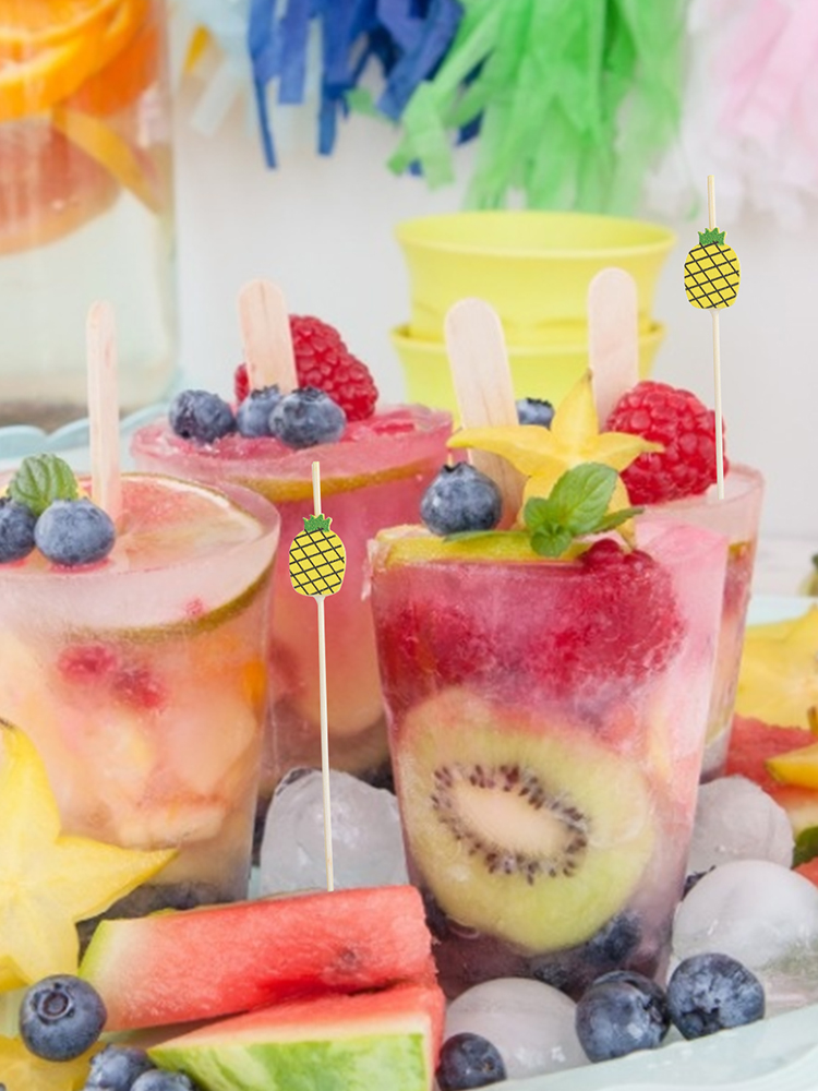 100 шт. одноразовые бамбуковые палочки для еды, фруктовые вилки, коктейльные палочки для торта, десерты, зубочистки, Летние Гавайские Вечерние Декорации