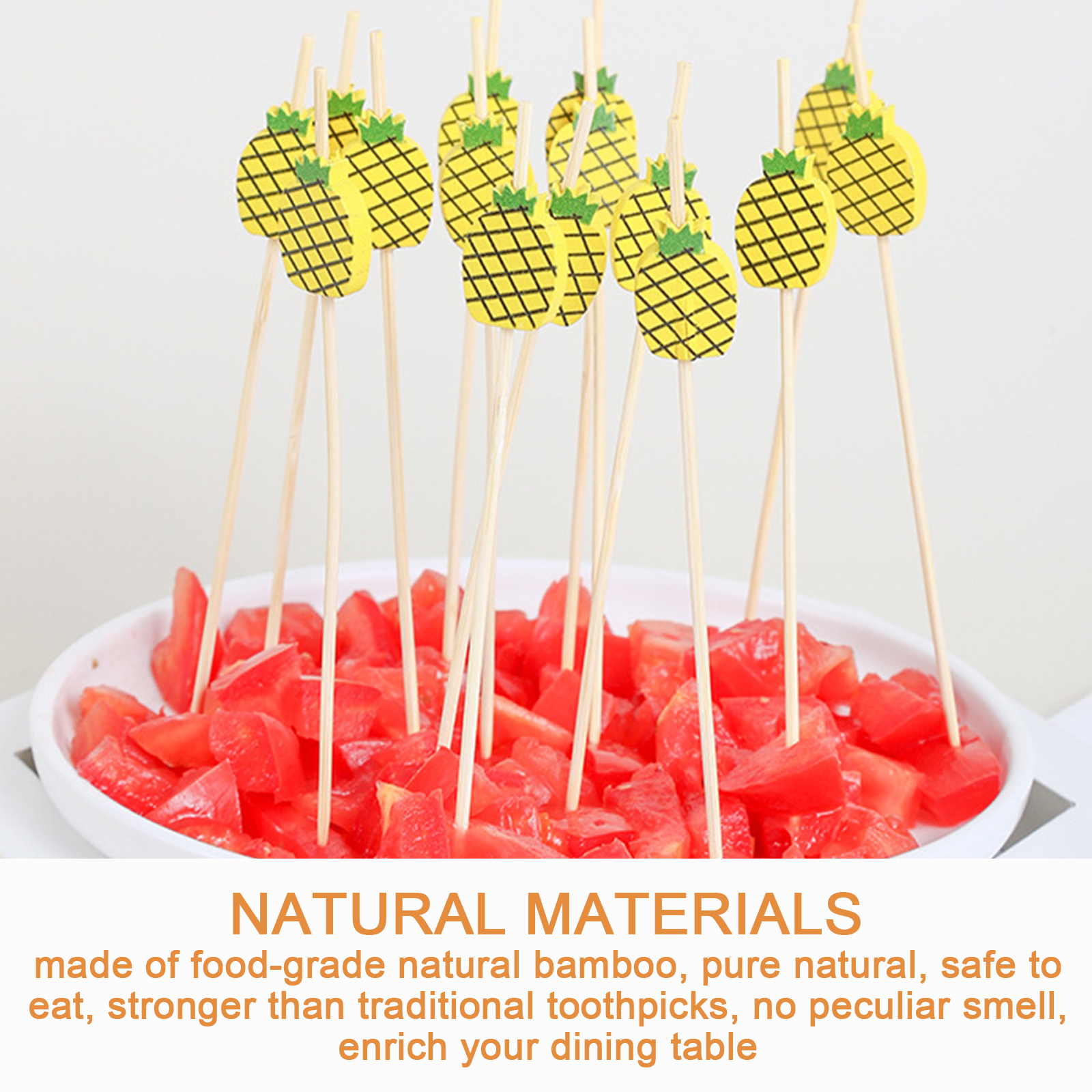 Подходит для всех случаев: Эти изысканные аппетитные бамбуковые палочки идеально подходят для украшения еды, напитков и столов, поэтому они могут широко использоваться в различных общественных собраниях, тематических собраниях и каникулах, домах, барах или на открытом воздухе