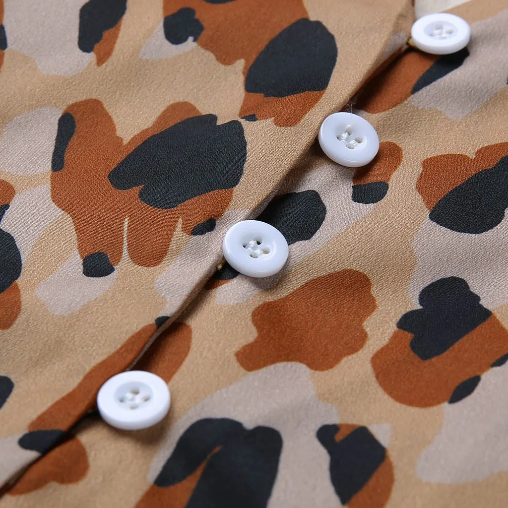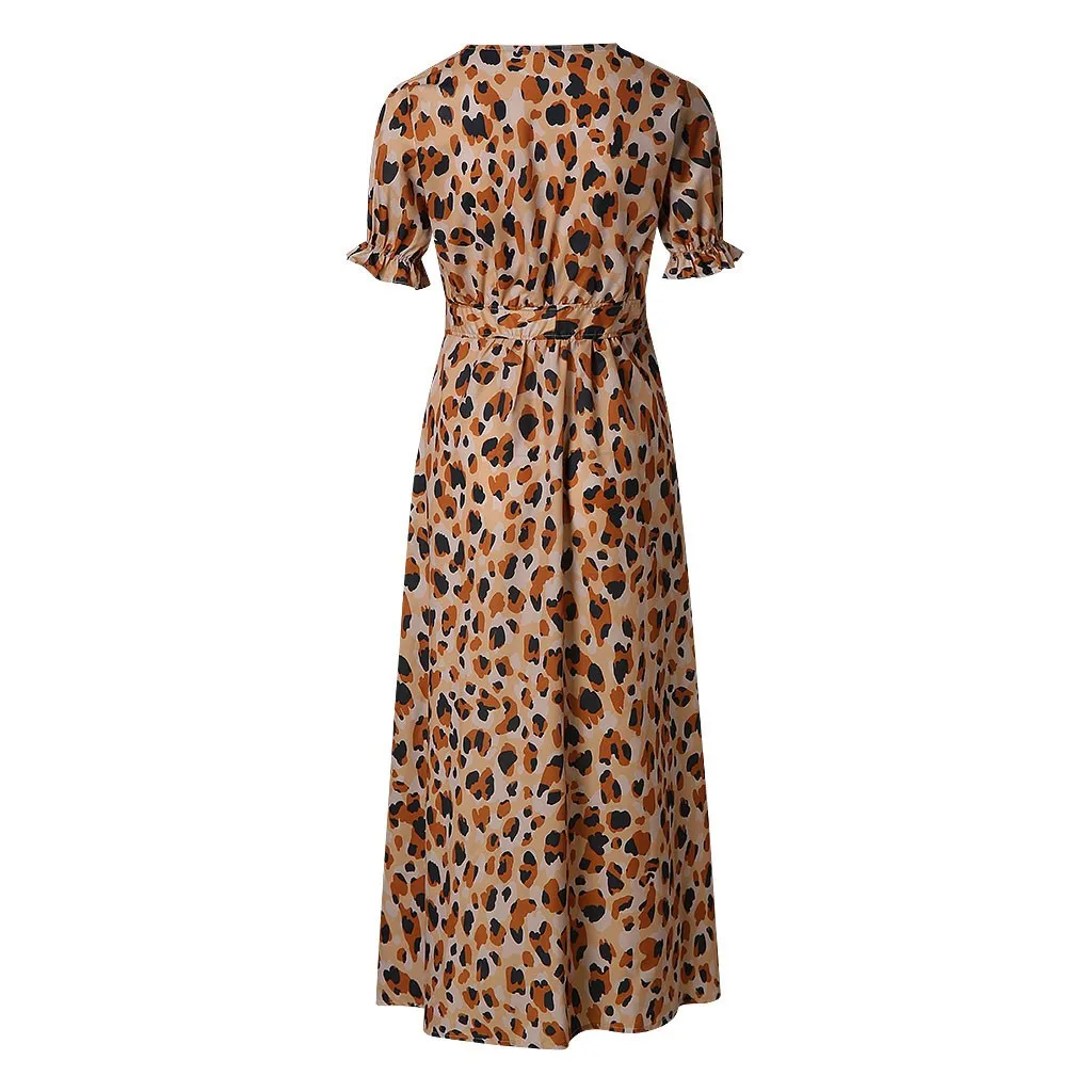 Женское платье с леопардовым принтом, длинное платье принцессы с короткими рукавами и бантом