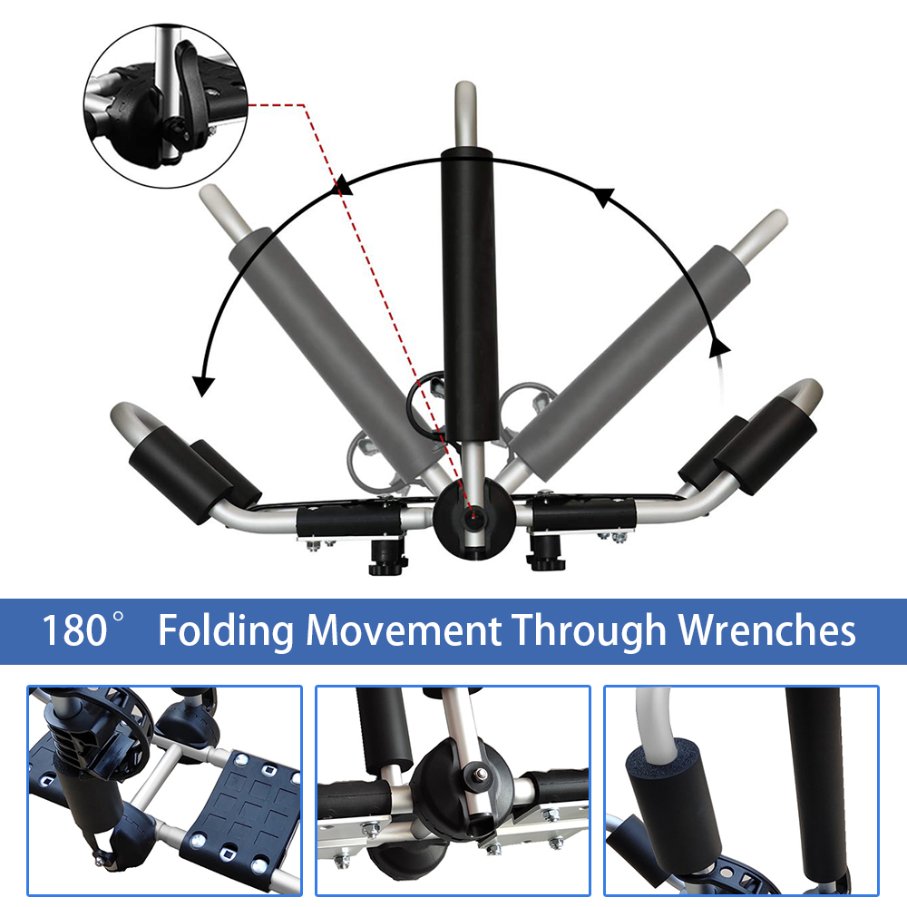 【Foldable складной дизайн обеспечивает максимально обеспечивает экономию места • Settings】 этот каяк Автомобильный багажник для велосипеда используется в вертикальном положении и J-кронштейны с крюком для того, чтобы сэкономить пространство в некоторой степени. Но складная конструкция предоставляет вам самую экономичную идею. Так как стойка может быть сложена, если вы хотите оставить свой автомобиль в гараже или малоэтажном здании, вы можете войти и выйти непосредственно, не повреждая стойку или здание.