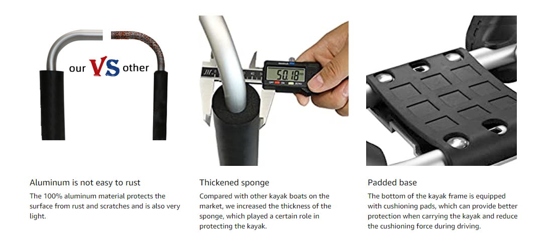 【Дополнительная толстая губка и мягкая подушка обеспечивают двойную защиту 】 kayakrack с самым толстым дизайном губки на рынке, что может свести к минимуму шок во время обычной транспортировки Каяка и защитить его тело. И мягкое основание подушки также обеспечивает вспомогательную защиту для краев каяка.