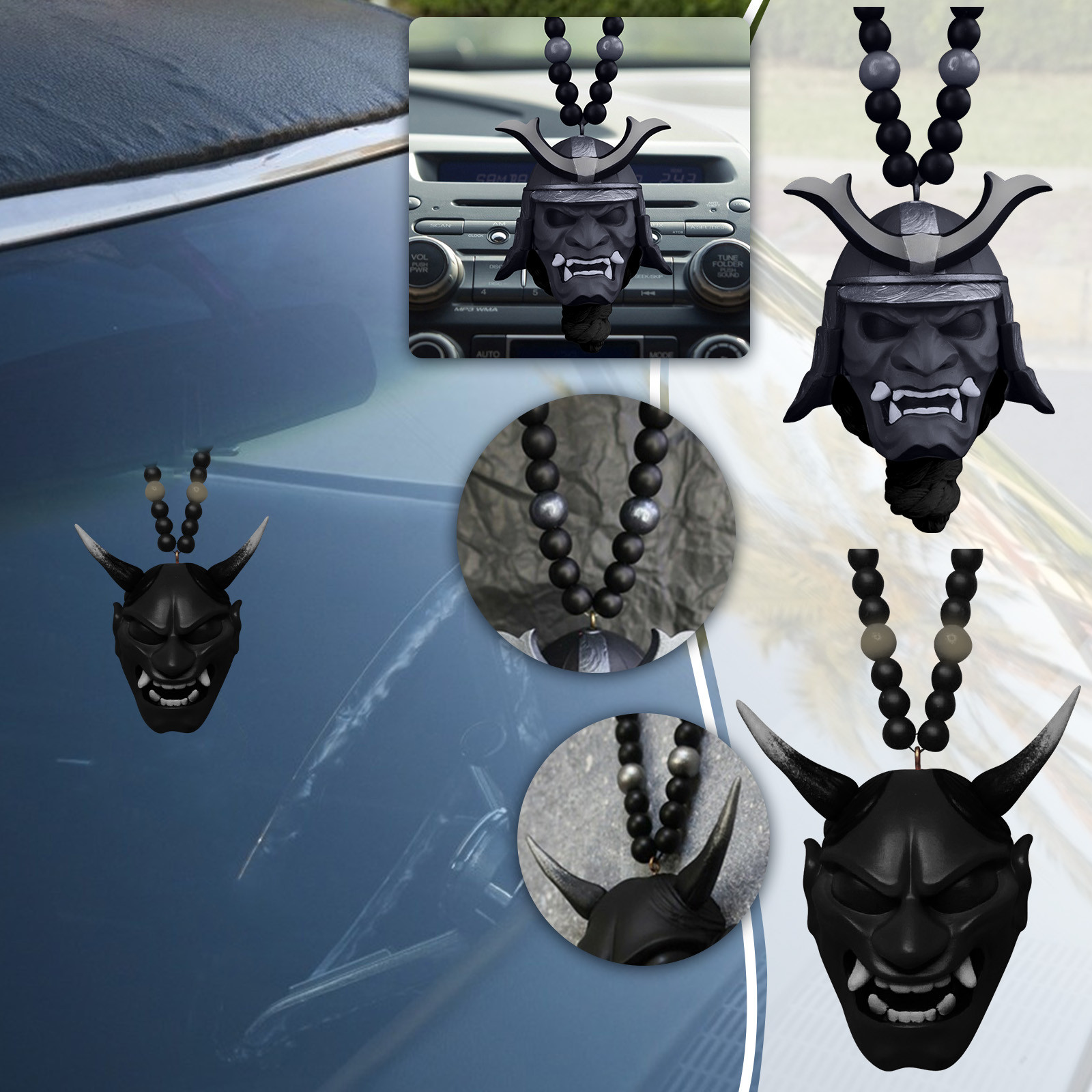 Японский самурайский убийца, демон, маска, кулон, Хэллоуин, злой воин, автомобиль, заднее зеркало, украшение, аксессуар, 5.6x4.3x1.9cm