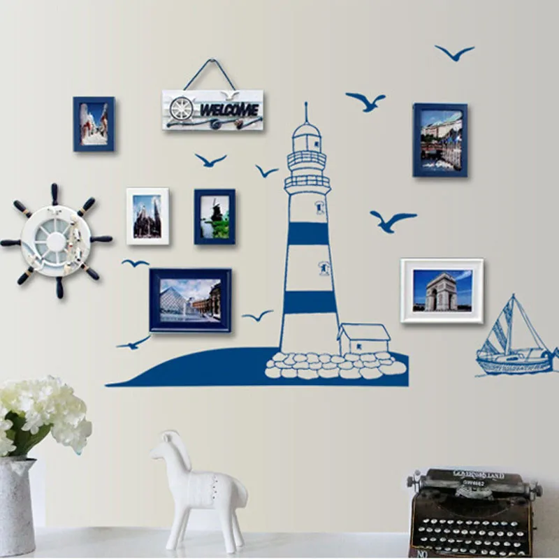 DIY дома parede Настенные наклейки обои 2016 новое поступление съемные настенные наклейки с голубой океан парус лодка корабль Чайка башня100% Новый брендОписание: