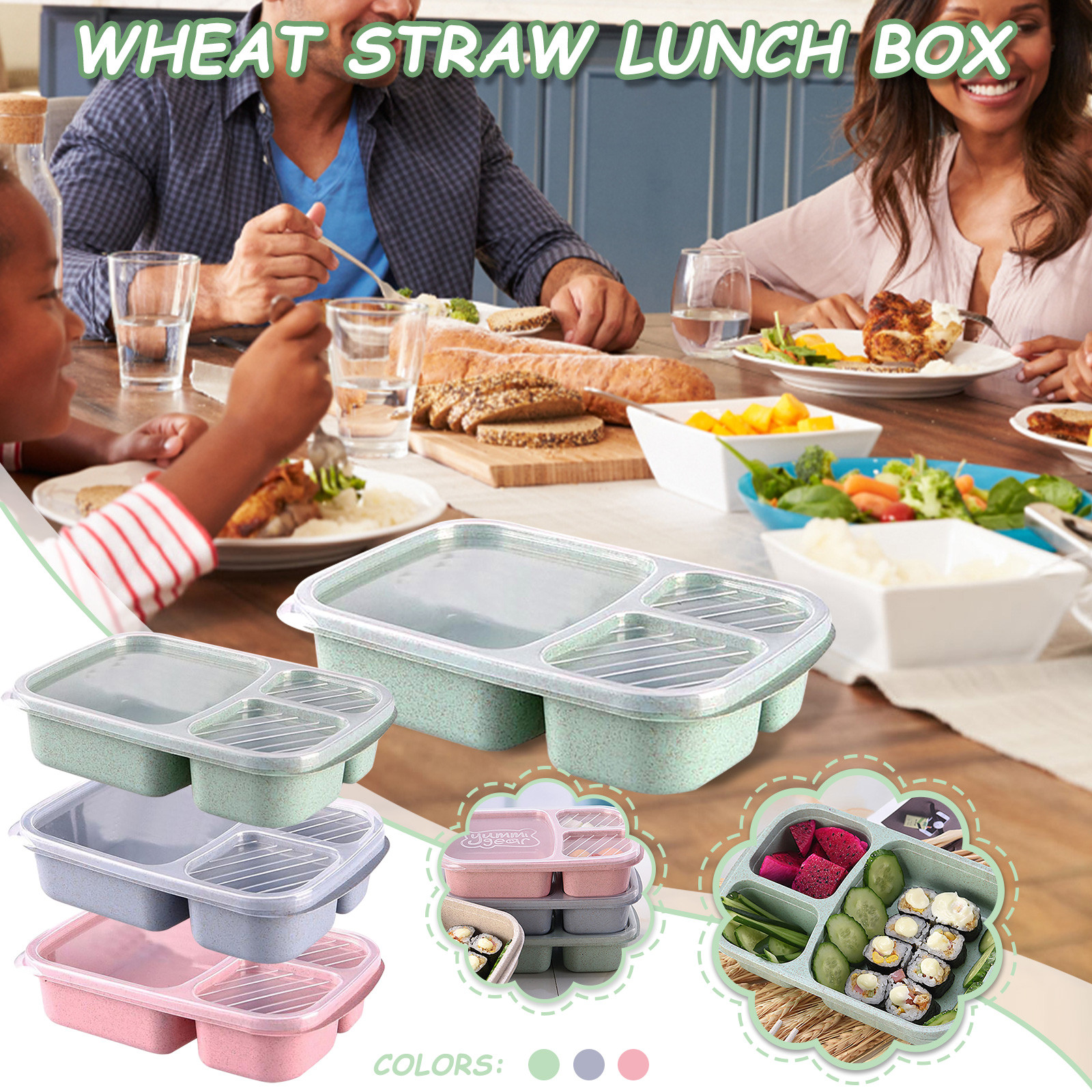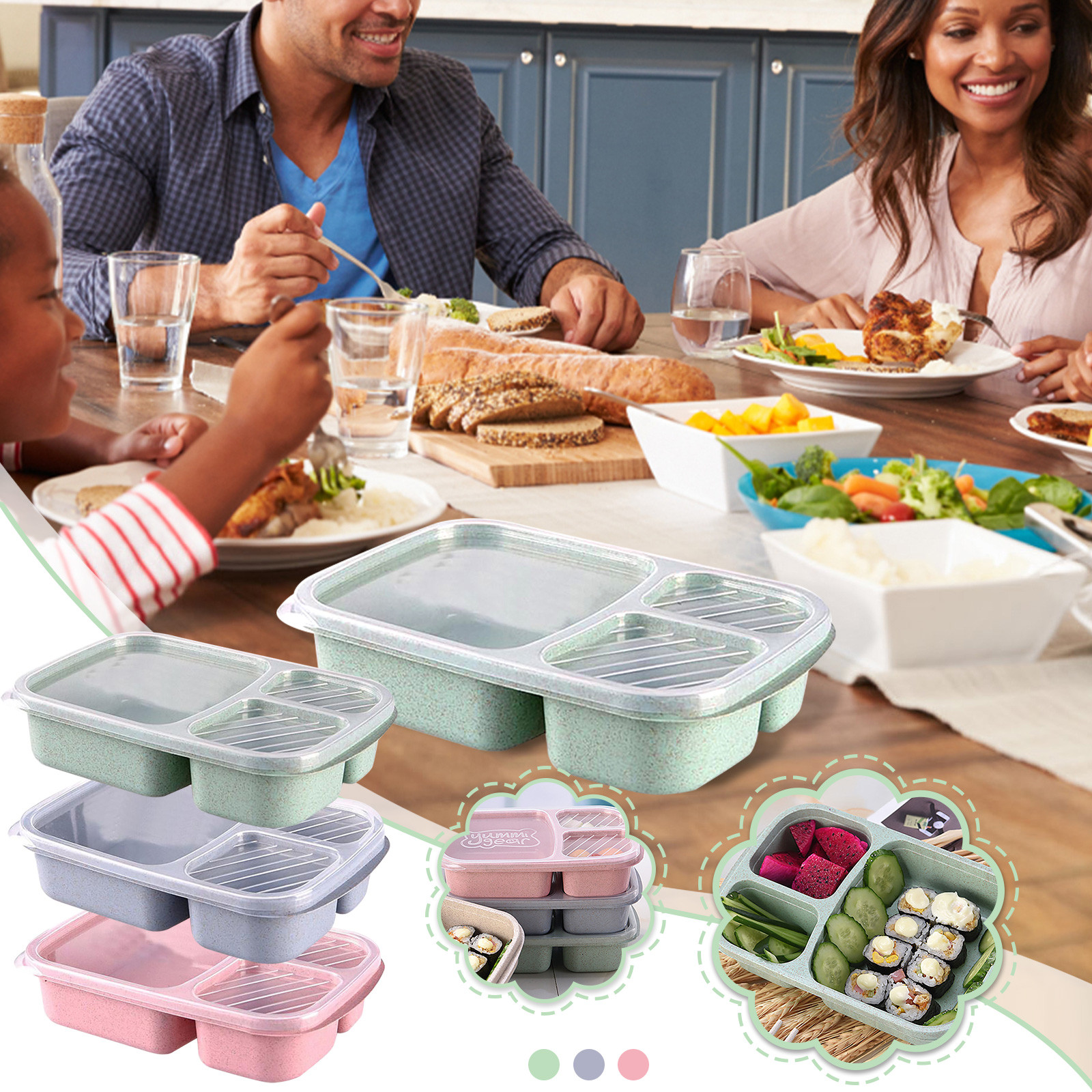 Ланч-бокс многоразовый 3 отсека пластик Разделенные контейнеры для хранения еды
