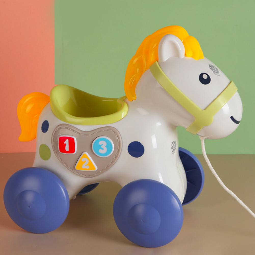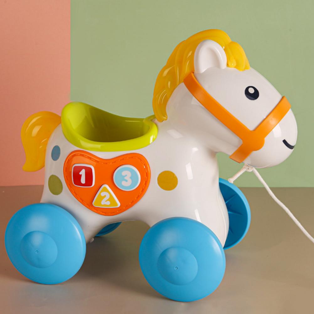 Благодаря мультяшной форме лошади и яркому цвету, игрушка push pull может рассказать истории и помогает улучшить способность распознавания детей и улучшить развитие интеллекта.