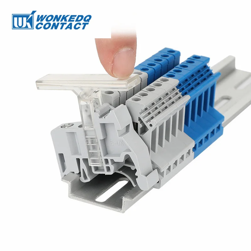 UK series Terminal strip marker carrier, for strip marking, adjustable height for using with end clamps E/UK and E/UK-2. Lettering field size:44x7mm